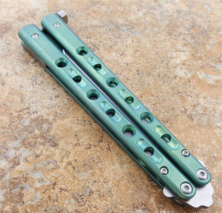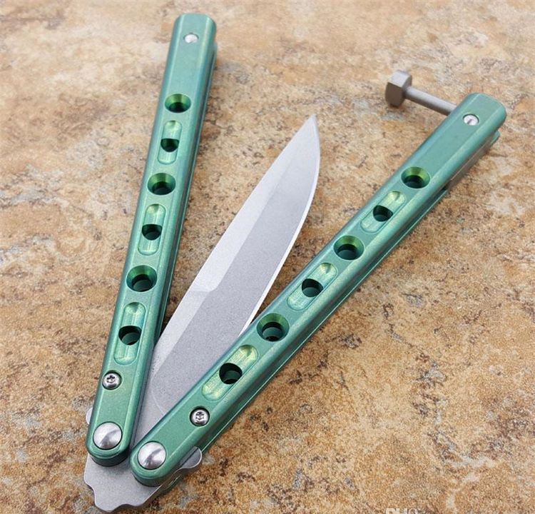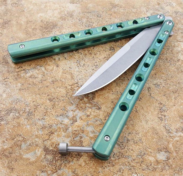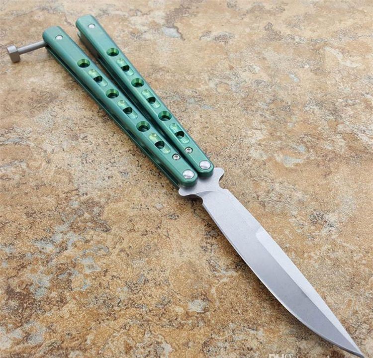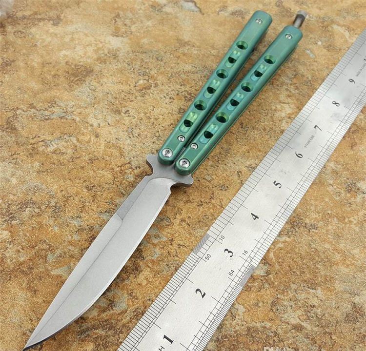 绿色钛柄BM62蝴蝶甩刀白刃