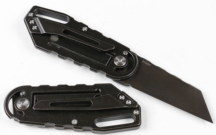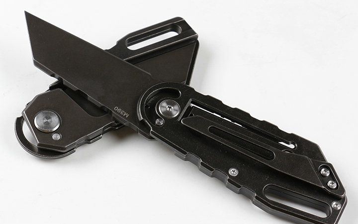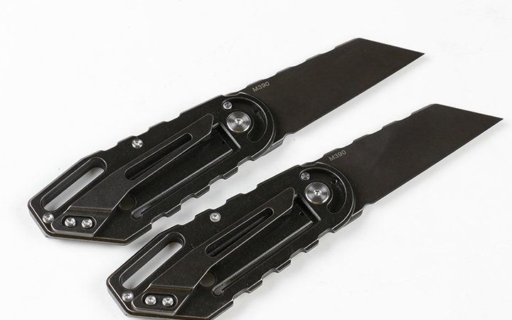 军需官M390折刀 全 长:15.2cm 刃 长:6.0cm 柄 长:9.2cm 刃 宽:2.5cm 刃 厚:3.3mm 刃 材:M390 重 量:100g(含包装) 硬 度:58-50HRC 表 面:真空黑钛处理 柄 材:CNC钛柄 锁 型:线锁,内轴承,开刀更流畅 其 他:尼龙套
