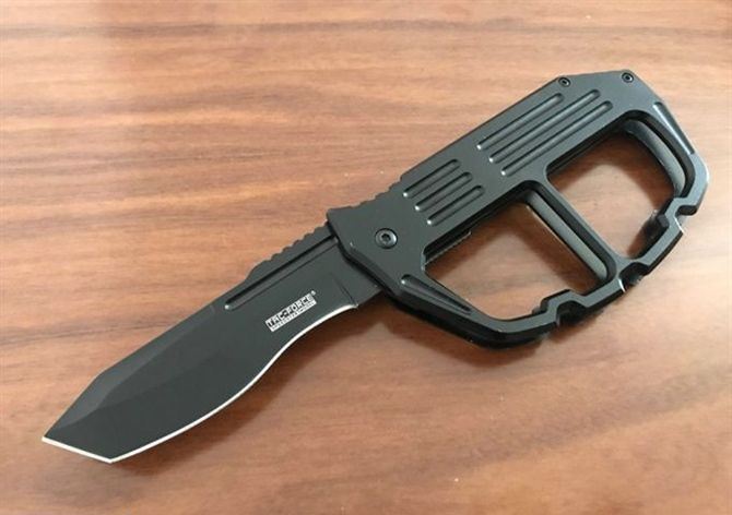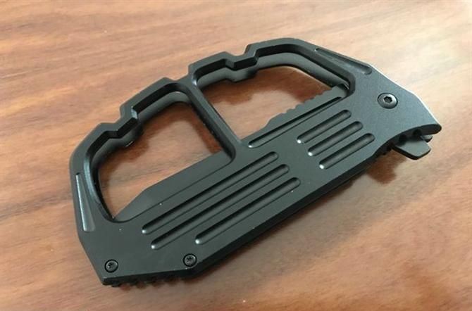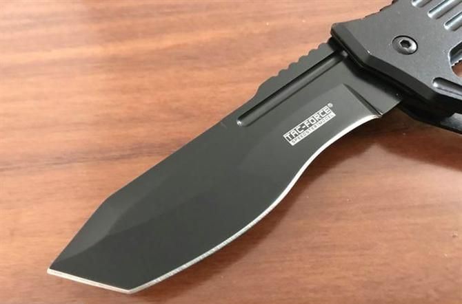 新款TF760手环折刀 全 长: 20.5cm 刃 长: 8.0cm 刃 宽: 2.5cm(最宽处) 闭 合: 12.0cm 硬 度: 57HRC 刃 厚: 0.28cm 重 量: 180.0克 表 面: 发黑 刃 材: 420 柄 材: 金属铝 锁 闭: 线锁,半自动助力开刀