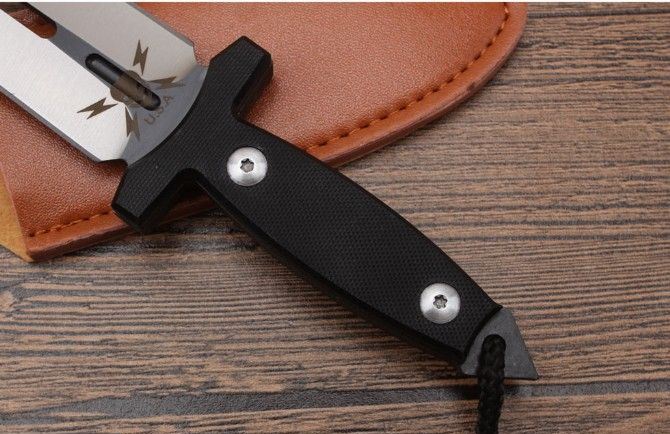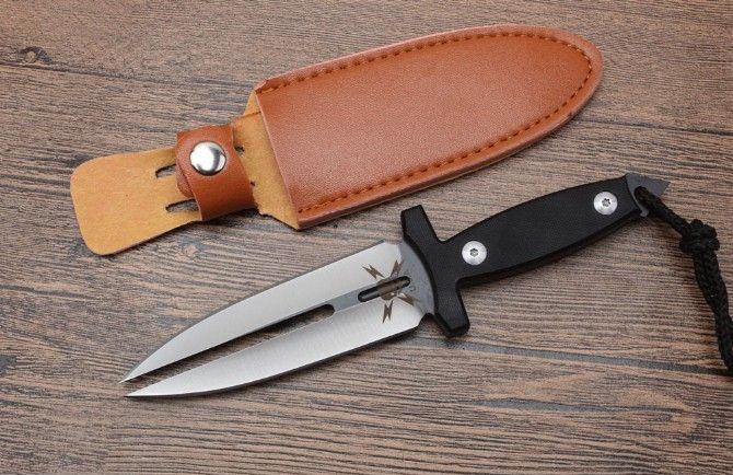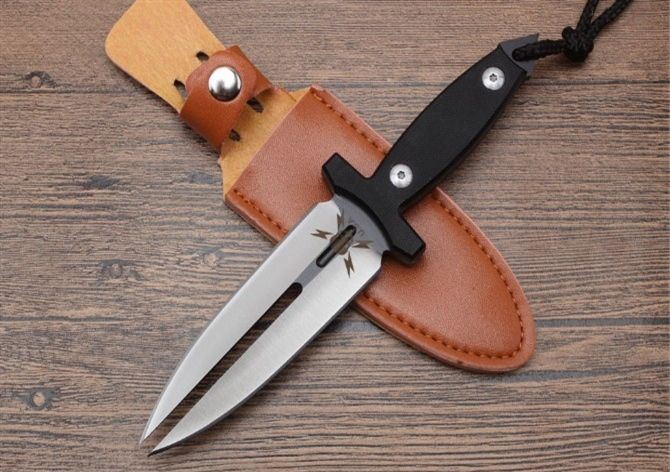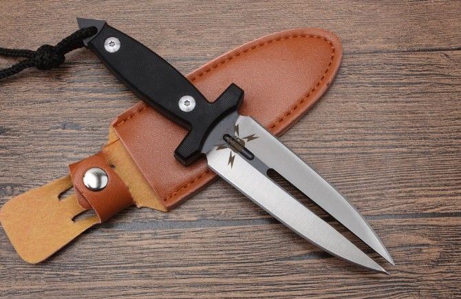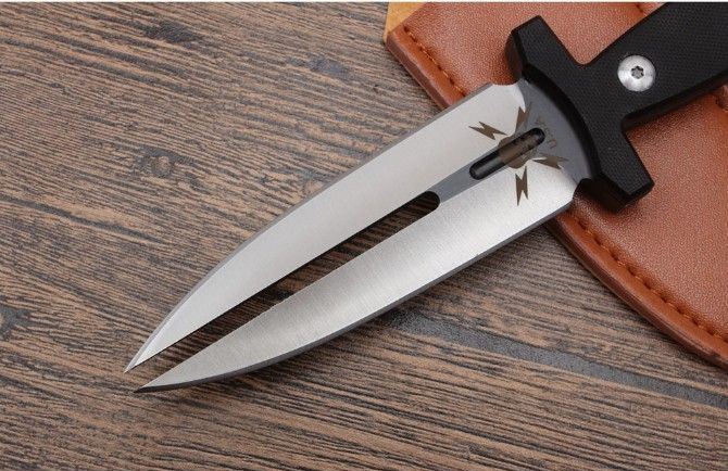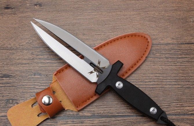 迷你幽灵双影双刃刺 全长:225mm 刃长:113mm 刃宽:26mm 刃厚:4.7mm 重量:240g 刃材:5Cr13 硬度:57{真空热处理) 表面:钢本色 柄材:G10,CNC 成型 刀鞘:qu皮 备注:此刀具过于凶恶,敬请刀友们小心,只供收藏