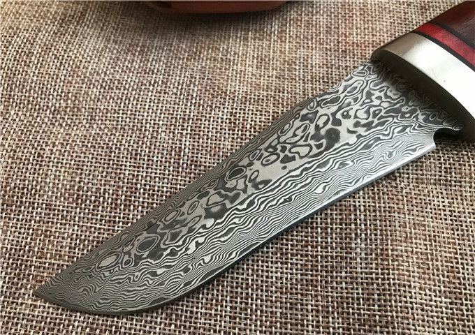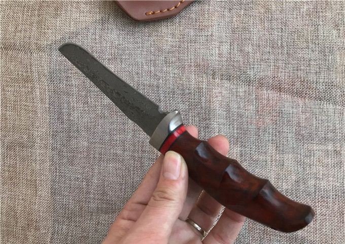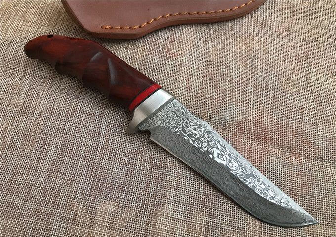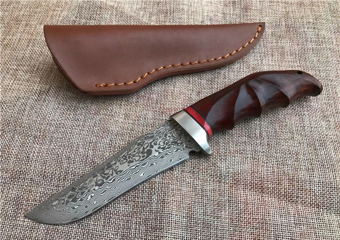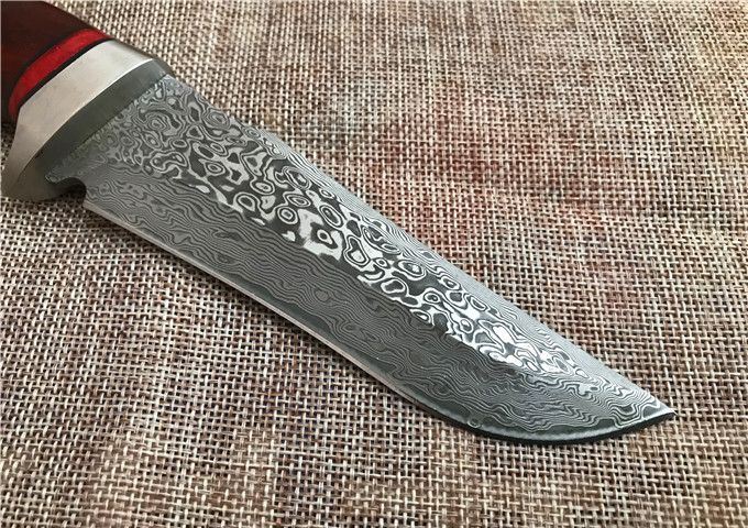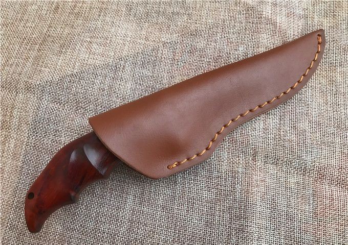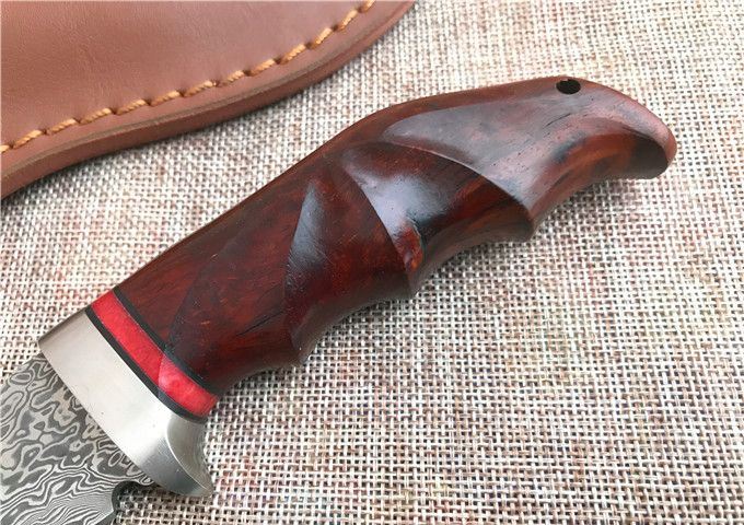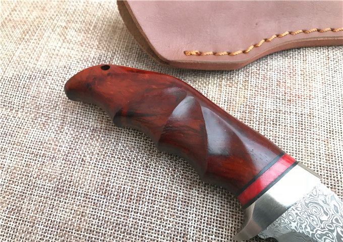 雄鹰大马士革直刀 全 长: 23.2cm 刃 长: 12.3cm 刃 宽: 3.3cm(最宽处) 柄 长: 10.9cm 硬 度: 59HRC 刃 厚: 0.37cm 重 量: 570克(含包装) 刃 材: 大马士革 柄 材: 红檀木 其 他: 刃口锋利 其 他: 纸盒,真皮套