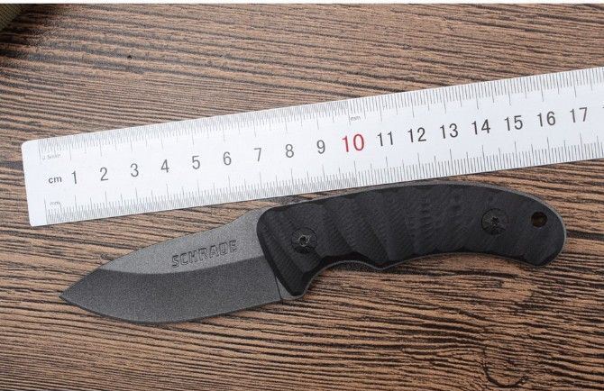 施拉德Schrade极端帝国野战求生直刀 全长:159mm 刃长:69mm 柄长:93mm 刃宽:29mm 刃厚:033mm 刃材:8Cr14Mov 重量:152g(含包装) 硬度:58HRC{真空热处理) 表面:喷砂 柄材:一体钢+G10(手感柔软舒适、防滑) 刀鞘:k鞘
