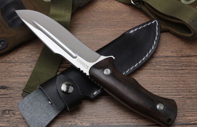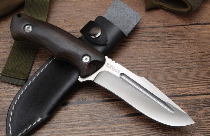 山猪苍狼小直刀 全长:22.9cm 刃长:11.5cm 柄长:11.4 刃材:440 硬度:58 表面:金属拉丝伴沙光 刃厚:0.5cm 柄材:一体钢+黑檀木 刀重:242克 总重:387克 刀鞘:皮套 其他:刃口锋利,包装
