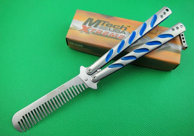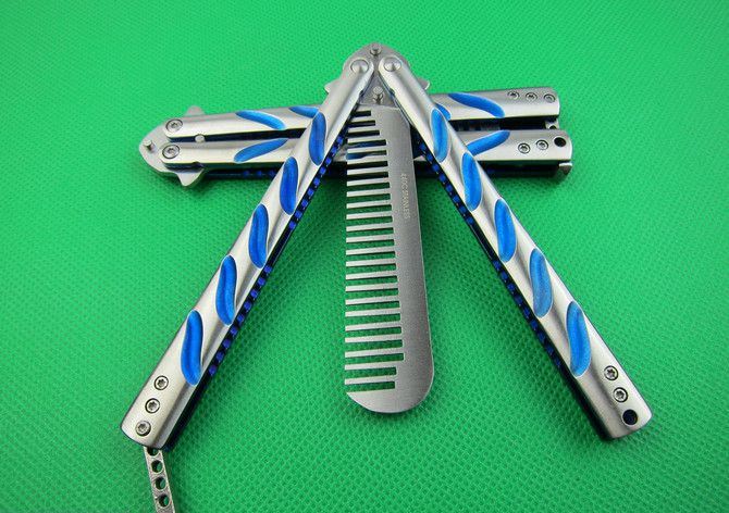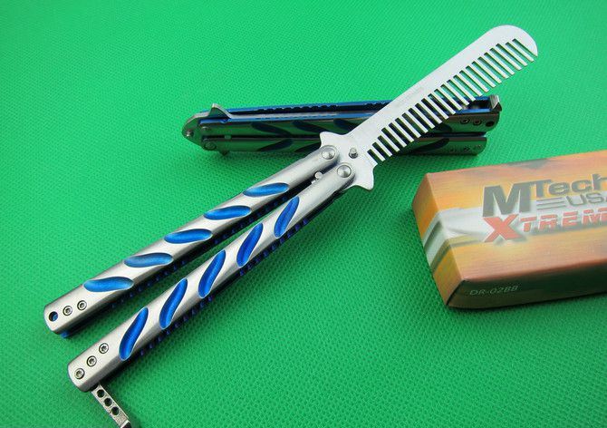 C38蓝钛梳子 全长:21.2cm 刃长:8.8cm 厚度:0.21cm 柄长:12.1cm 刃宽:2.1cm 刃材:440C 柄材:全钢 重量:140克(含包装) 表面处理:砂光 包装:原装彩盒。