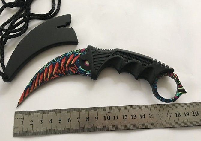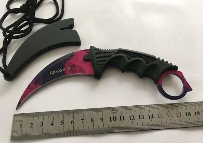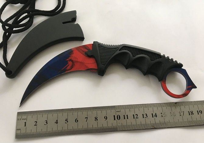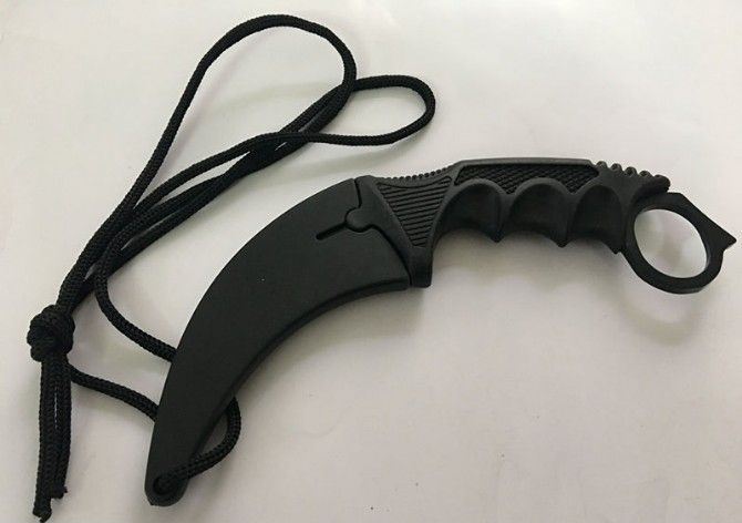 冷残直爪刀 全长:18.5cm 刃长:8.5cm 柄长:11cm 刃宽:3cm 刃厚:0.2cm 刃材:3烙 重量:120(单刀) 硬度:56HRC 表面:彩色 柄材:黑色G10 其他:K鞘和白盒