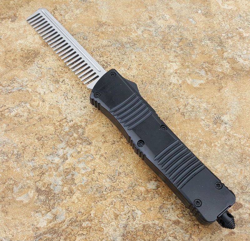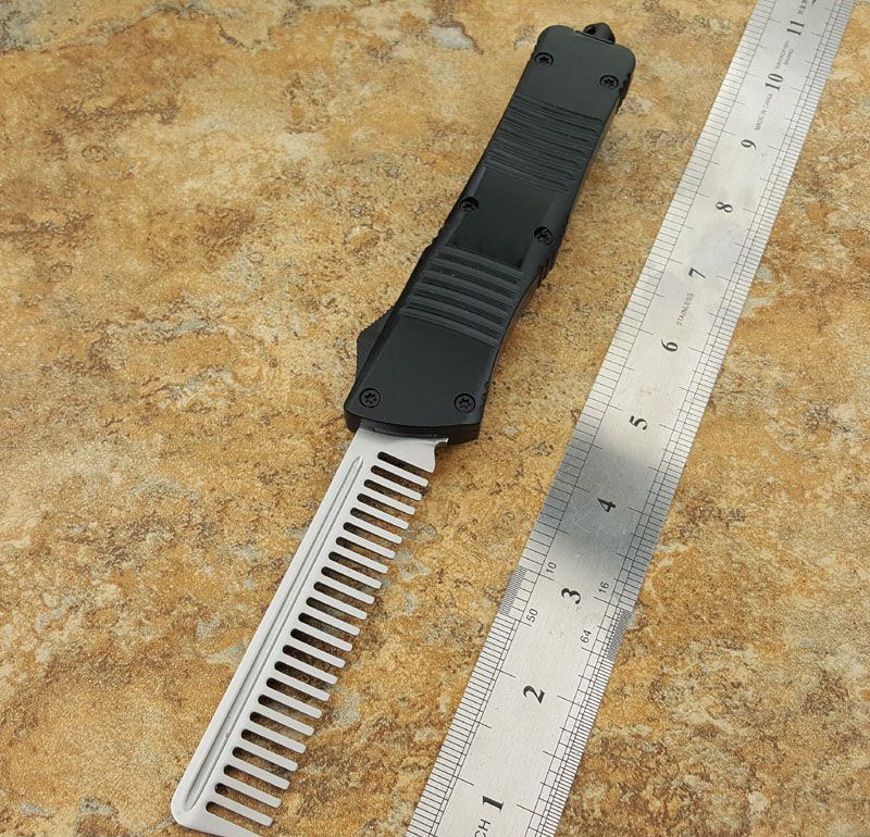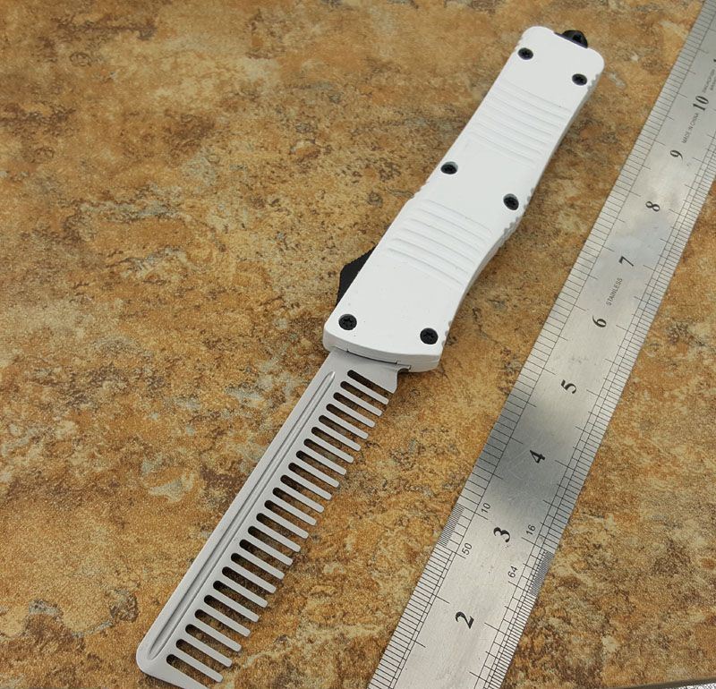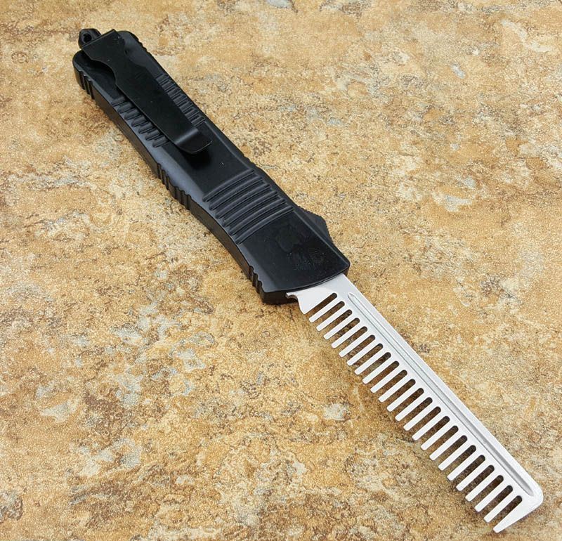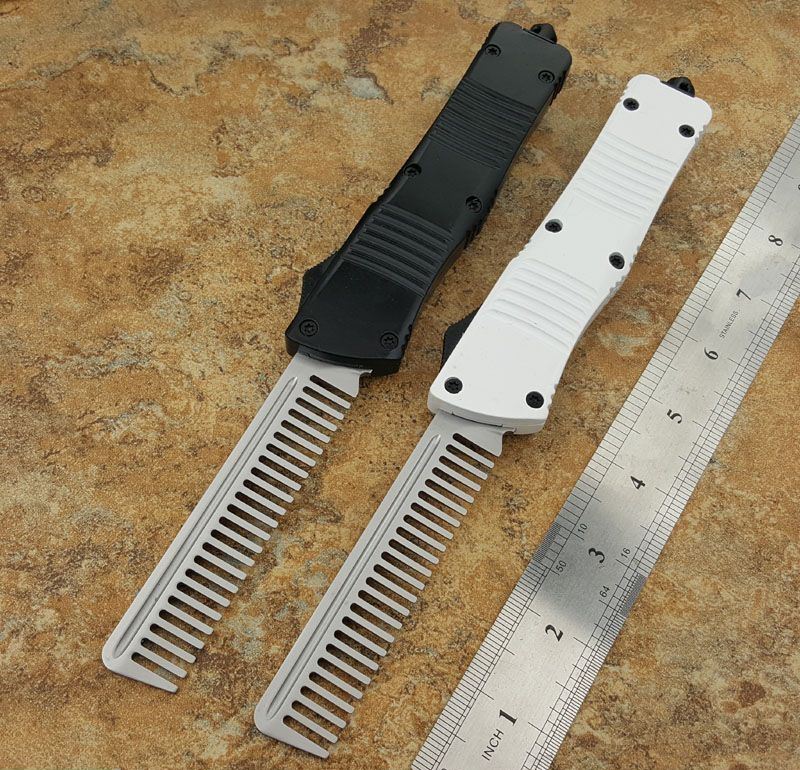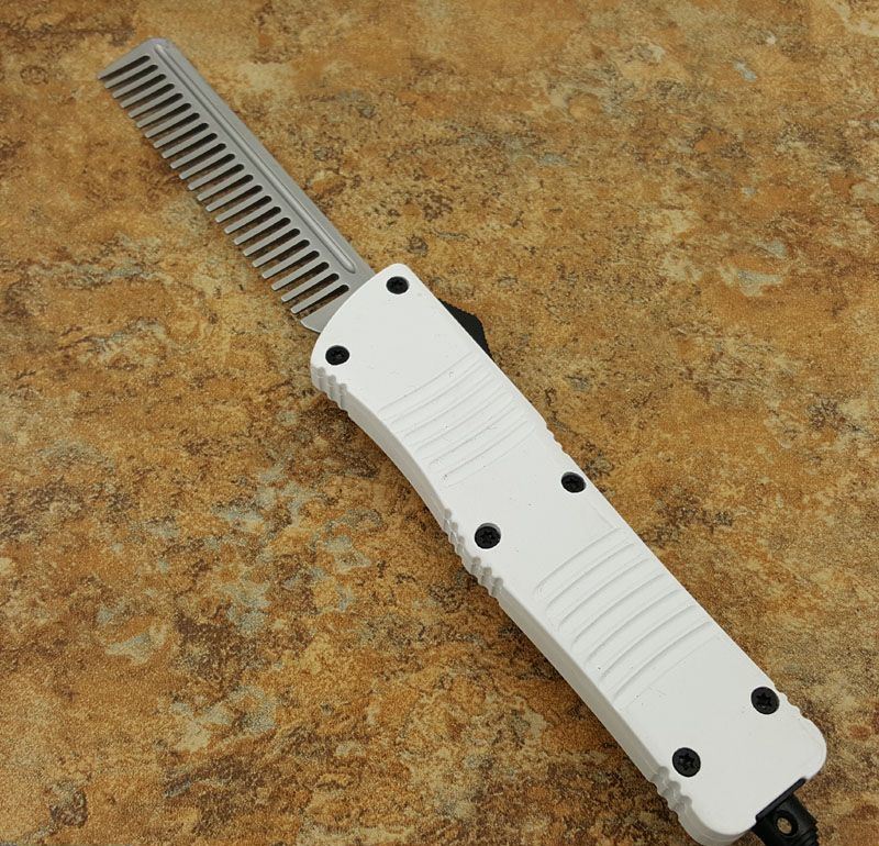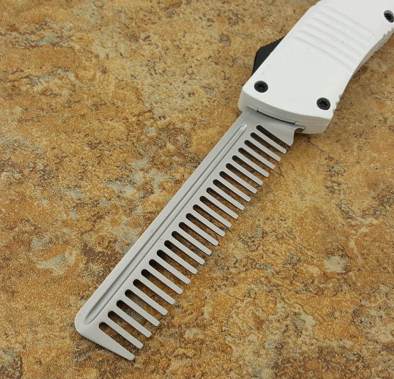 微技术经典直跳伤齿龙黑白梳子跳刀 全长:24CM 刃长:9.6CM 柄长:14.6CM 刃材料:440 刃型:梳子 刃表面:缎光面,CNC磨 柄材料:合金手柄 重量:300g 刀鞘:战术尼龙套