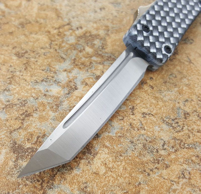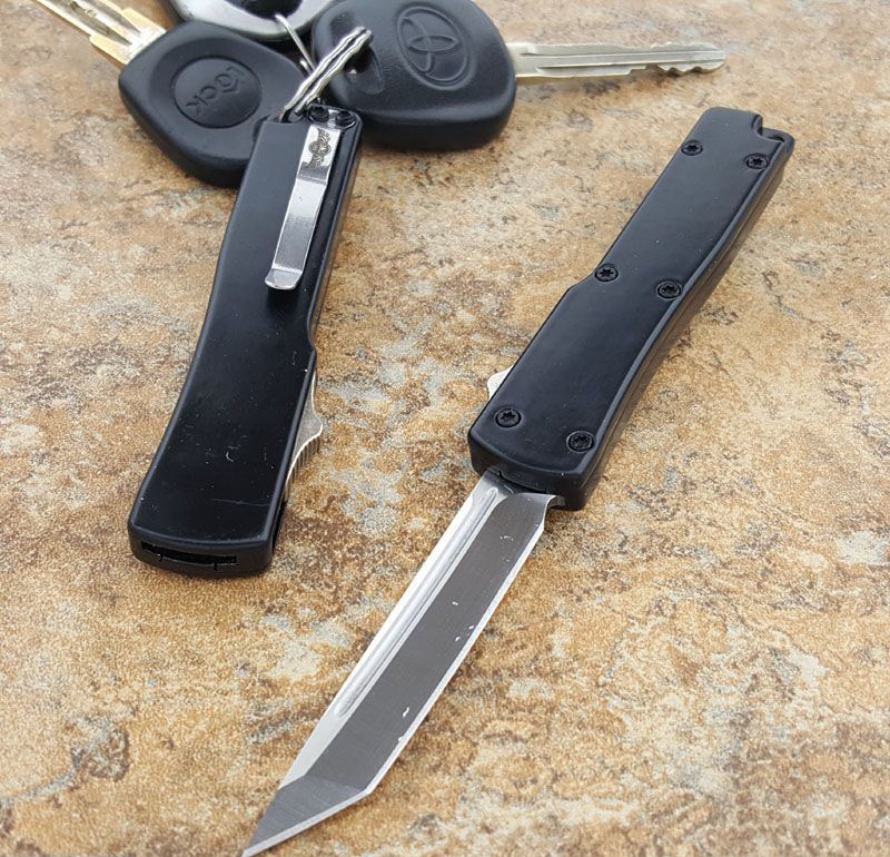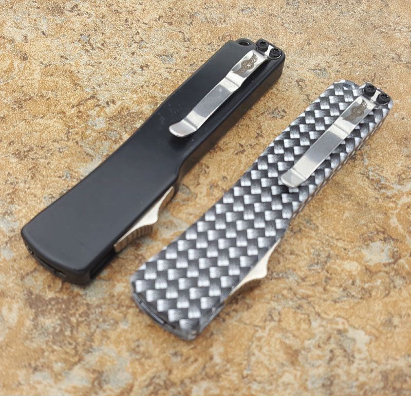 Mini迷你小直跳刀(碳纤、黑) 展开:14.3 刃长:6CM 收起:8CM 柄材料:数控加工合金柄 刀刃:440,数控精磨刃 重量:50克 Mini款直跳刀,合金耐用材柄,数控加工构件,弹锁机构精确耐用,超小巧便携的直跳刀,尾端钥匙圈穿孔,可玩性强