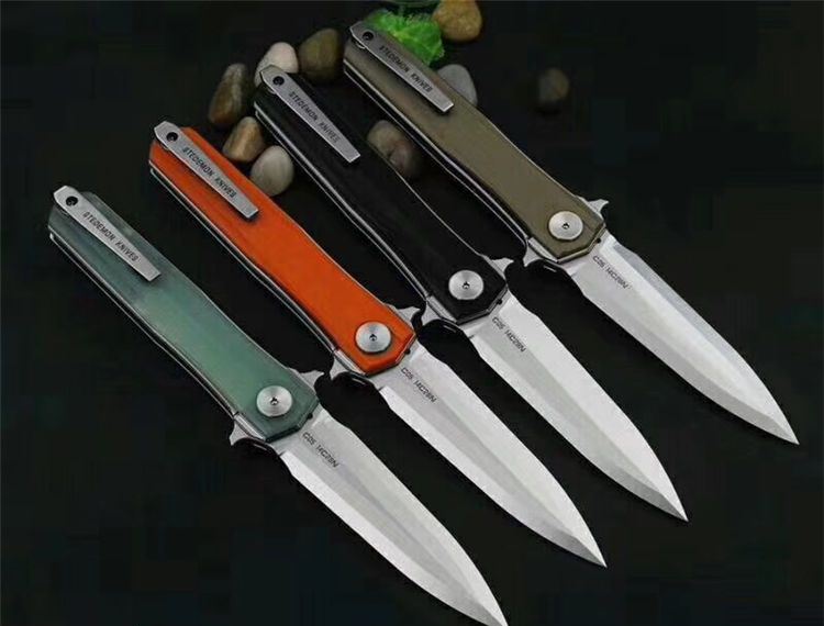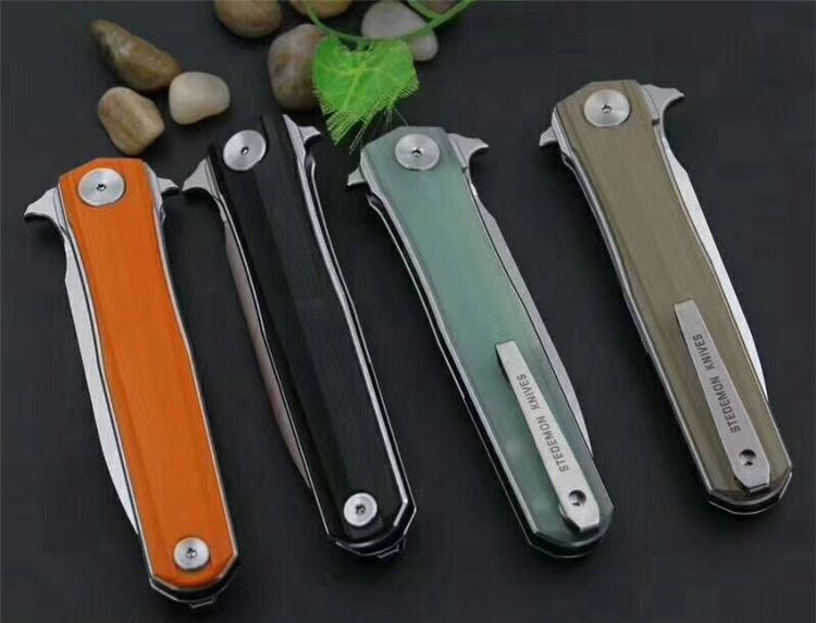 C05双刃折刀砂光 全长:215MM 刃长:84MM 刃厚:3.8MM 刃材:14C28N 重量:133克左右 柄材:G10 轴承:KVT钢珠 颜色:黑色,透明,橙色,沙漠 刃面:砂光