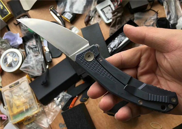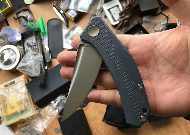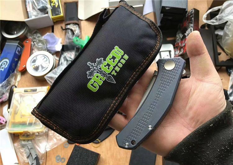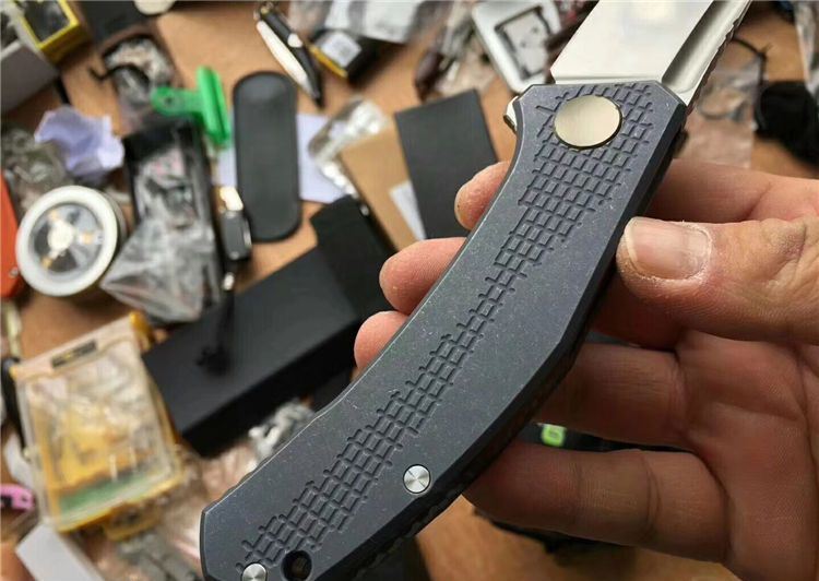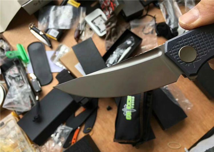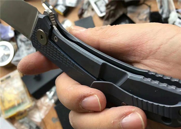绿刺版熊头牛仔裤折刀 总长度:222mm 刀片长度:95mm 手柄长度:128m 叶片厚度:4.0mm 刀片宽度:31.5mm 叶片表面处理:石洗 陶瓷球轴承 硬度:60—61 净重:137克 叶片材质:m390(100%m390,可以测试) 螺丝:主轴螺丝为TC4钛合金,其他螺丝为高强度不锈钢螺丝。 手柄材质:TC4钛合金,数控切割,成型工艺,减轻重量。 手柄表面:蓝色阳极氧化元素+石洗。 其他:尼龙拉链夹克