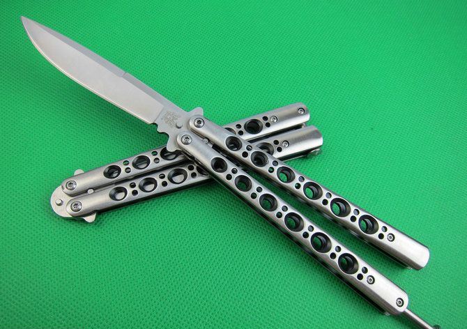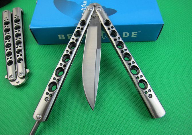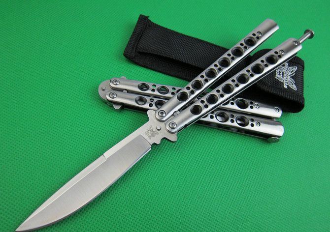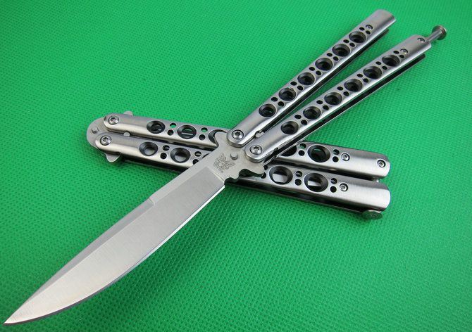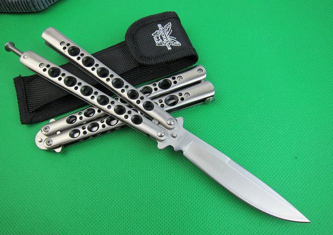 蝴蝶.黑孔BM42SBK甩刀 全 长:24.0cm 刃 长:9.2cm 柄 长:13.5cm 刃 宽:1.9cm(最宽处) 刃 厚:2.8mm 刃 材:440C 硬 度:56HRC 刀 柄:钢柄 表 面:砂光 重 量:140.0克 配尼龙袋,原厂包装