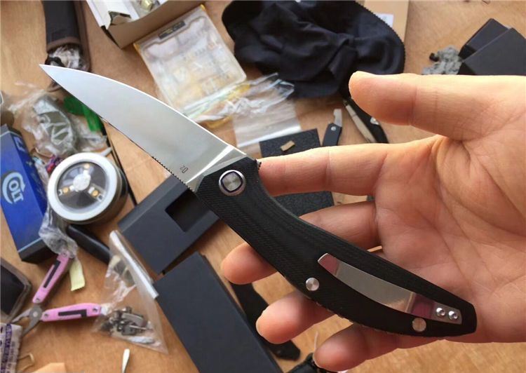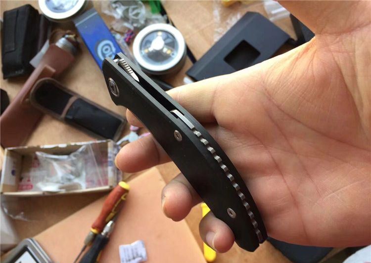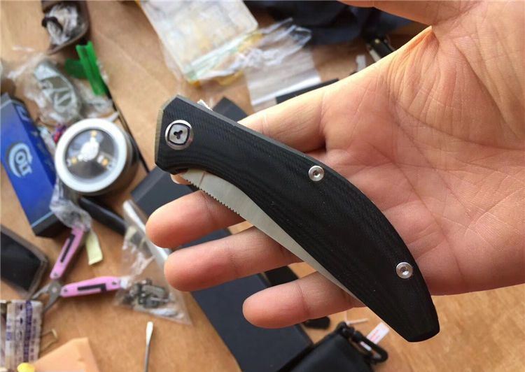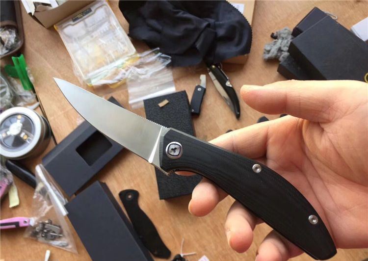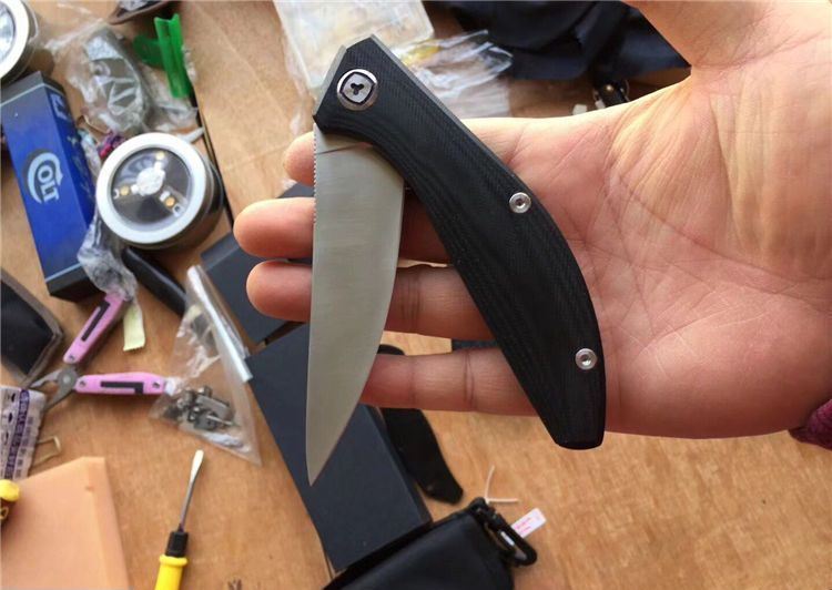 西格玛折刀黑柄 全长: 228mm 刃长: 98mm 闭合: 130mm 刃厚: 3.6mm 刃宽: 28 mm 刃面: 砂光 系统: 单手快开 硬度: 59-60HRC 重量: 133g (±1g) 钢材: 9cr 柄材: G10+不锈钢 其他: 黑色盒子