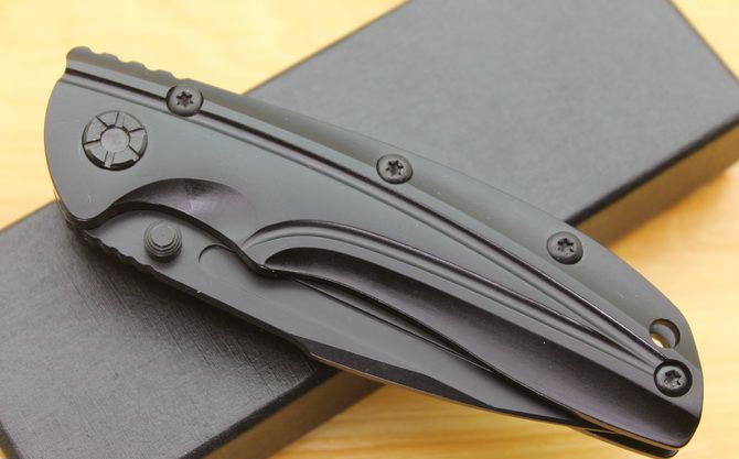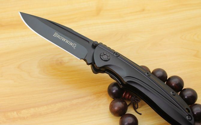 勃朗宁神兵小折刀黑色 全 长:20.0cm 刃 长:8.2cm 刃 宽:2.8cm(最宽处) 刃 厚:3.8mm 柄 长:11.5cm 表 面:黑钛 刃 材:440C 硬 度:57HRC 柄 材:全钢柄电脑椤成型,线条美观 重 量:200克(含礼品盒子) 锁 闭:线锁 备 注:带腰夹