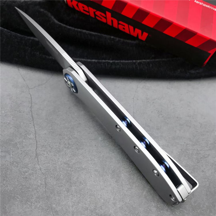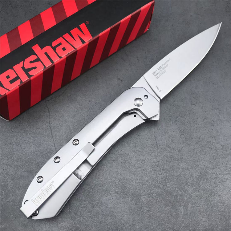 克肖海王星折叠刀 全长:182.72mm 刃长:86.5mm 柄长:105.47mm 刃厚:3.1mm 刃宽:20mm 刃材:8Cr13mov高碳钢 柄材:优质420不锈钢 硬度:58-60HRC 净重:136g 表面:银钛喷砂精细扎印 开刃:超高峰力度20° 开刃系统:弹簧垫片半阻力+助力 结构:一体线锁