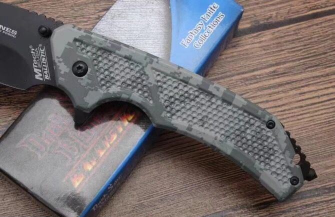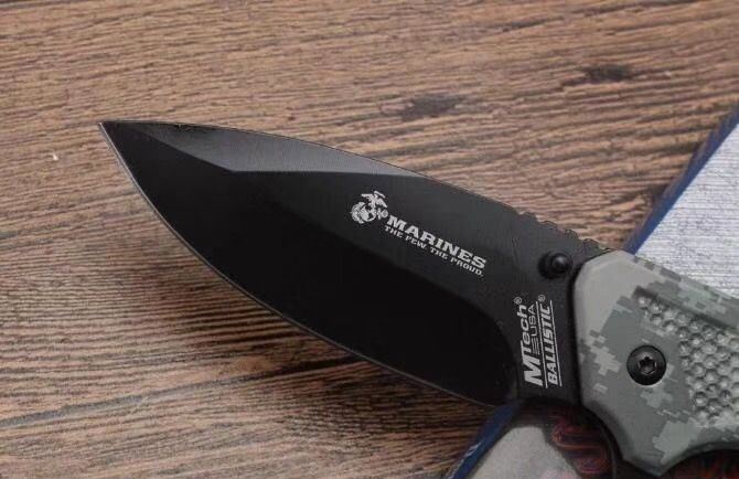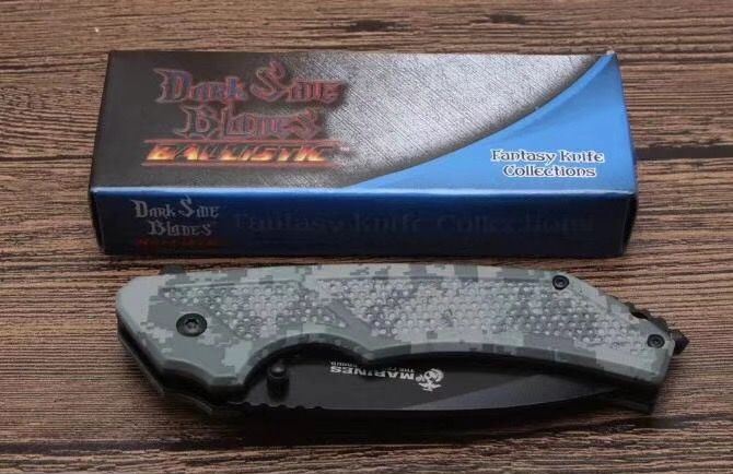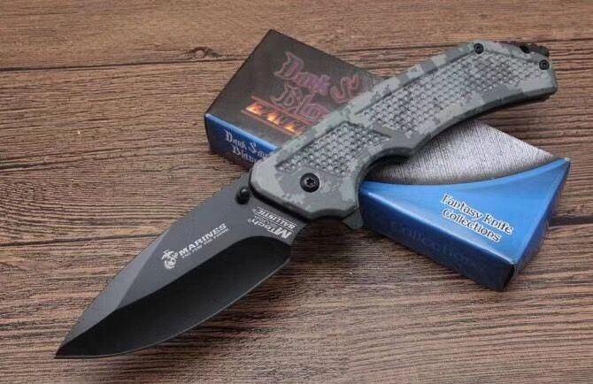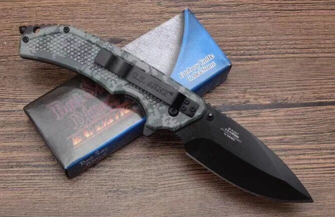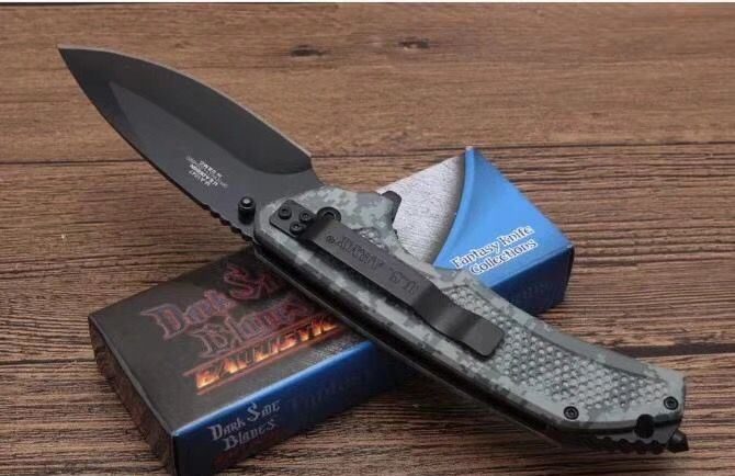 TF730快开折刀 全 长:218mm 刃 长:86mm 柄 长:133mm 刃 宽:34mm 刃 厚:2.5mm 刃 材:5Cr15Mov 重 量:196g(含包装) 硬 度:57HRC 表 面:黑钛 柄 材:钢柄+披履G10 锁 型:快开 其 他:配彩盒