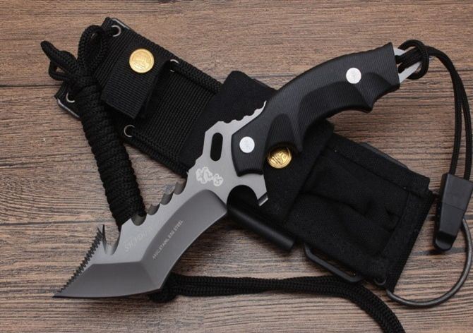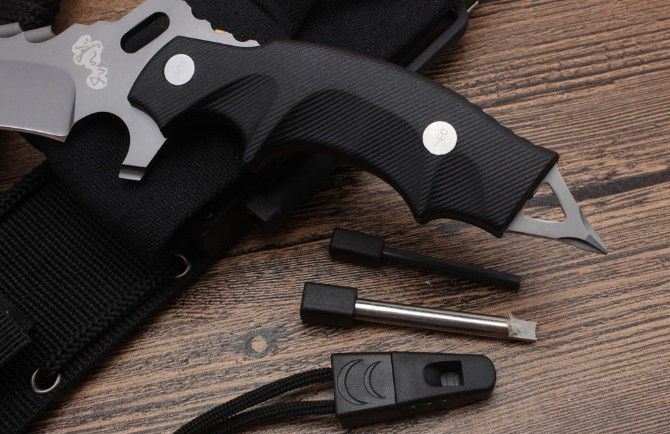 影子之峰直刀 全长:24.8CM 刃长:12.1CM 刃厚:0.49CM 刃宽:382CM 刀刃材质:8Cr17Mov 硬度:58HRC 柄材:G10 刀鞘:黑色尼龙战术绑腿刀鞘纸盒哨子打火棒附带罗丝刀 重量:465克含包装