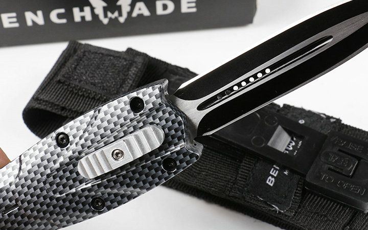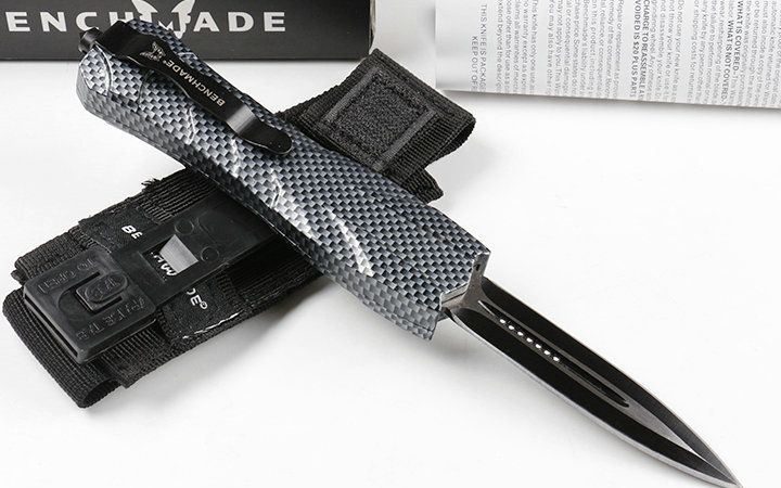 蝴蝶3300直跳刀双锋碳纤纹 全 长: 23.0cm (含尾锥长度) 刃 长: 9.5cm 刃 厚: 3mm 刃 材: 440 硬 度: 57HRC 总重量:370.0克(含包装物) 表 面: 黑白拉丝(刀刃) 柄 材: 锌铝合金 刀 鞘: 尼龙 锁 闭: 弹簧直出 备 注: 带背夹
