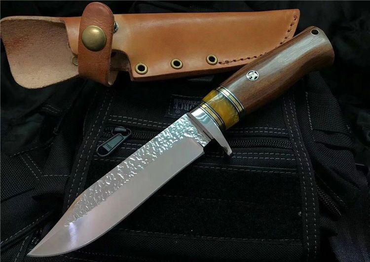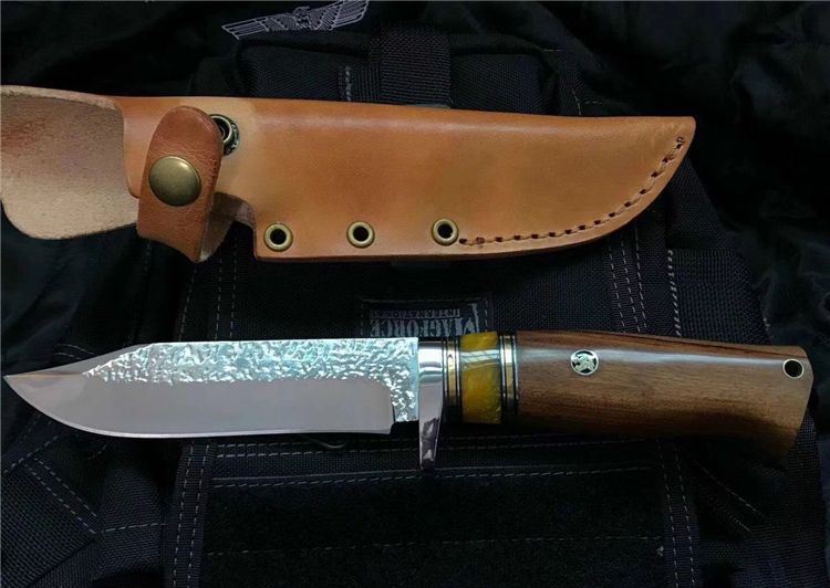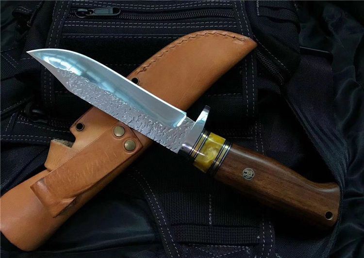 刃材:锻打9CR,配真皮皮套,异常锋利,手感极佳,适合户外狩猎,收藏观赏