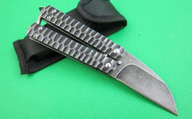 全 长:15cm 刃 长:5.8cm 柄 长:9cm 刃 宽:2.5cm(最宽处) 刃 厚:2.8mm 刃 材:7Cr17MOV 硬 度:58HRC 刀 柄:全钢扎纹 表 面:灰钛+石冼纹 重 量:140克 备 注:原厂白盒,外贸产品,质量保证