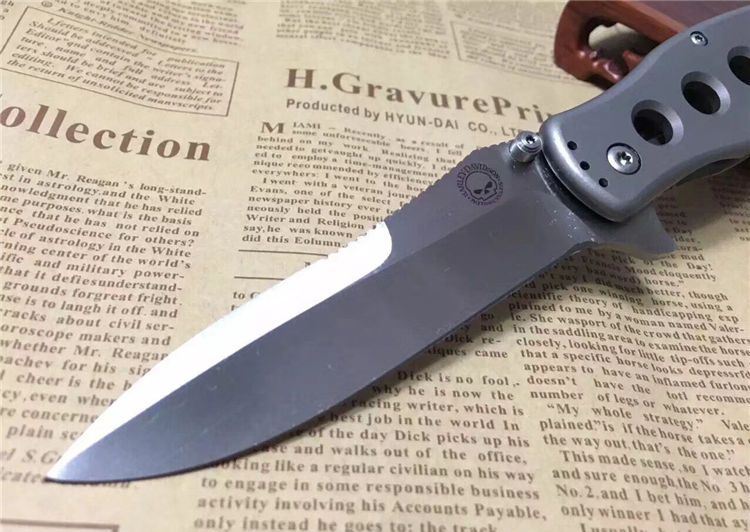 蝴蝶经典哈雷戴维斯13900保真代工版折刀 全长:216mm 刃长:93mm 柄长:120mm 刃厚:3mm 刃宽:2.5mm 刃材:9Cr13 柄材:钛合金(数控加工) 硬度:60HRC 重量:160g(配彩盒和出世纸,代工版)