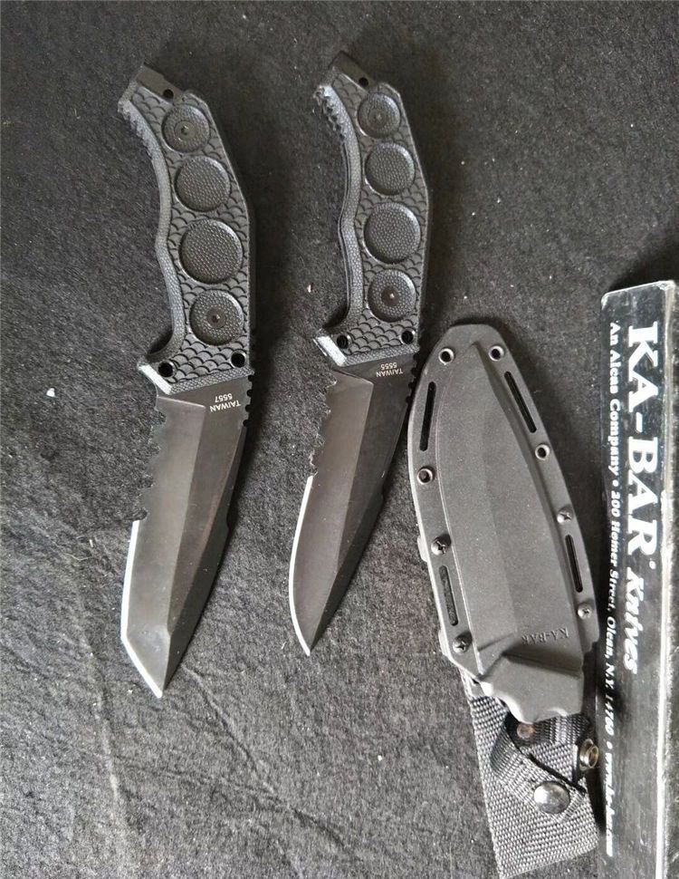 精仿卡巴战术直刀 全 长: 25.3cm 刃 长: 12.5 刃 宽: 4cm(最宽处) 柄 长: 12.8cm 刃 厚: 0.6cm 刃 材: 440C 硬 度: 58RHC 表 面: 发黑处理 柄 材: 刀身贯穿刀柄,两面玻纤片(玻璃纤维:类似塑料的一种新型材料,硬度和韧度都很好) 净 重: 430克(含套) 其 他: 龙骨结构,几何刀头,刃口锋利;玻纤刀套,原厂精装纸盒