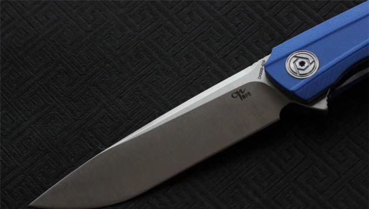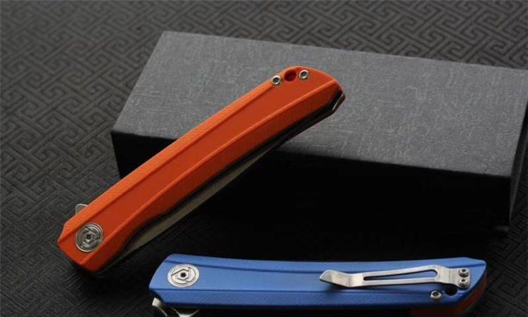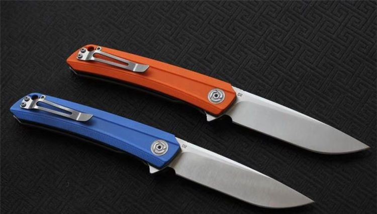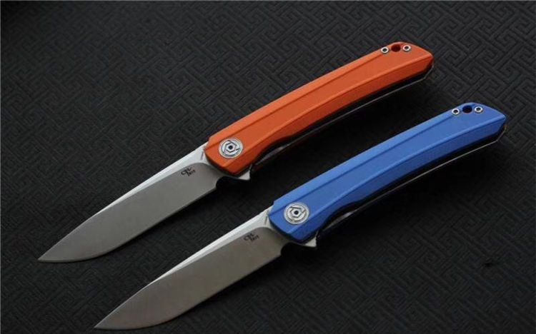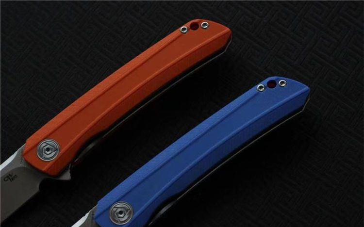 经济版ch3002折刀 总长度:225毫米 叶片长度:95毫米 手柄长度:125mm 叶片厚度: 28mm 叶片宽度: 25毫米 叶片材料:D2 硬度: 59-60HRC 把手材料:G10(蓝色,橙色) 净重:160克 包装:黑色礼品盒
