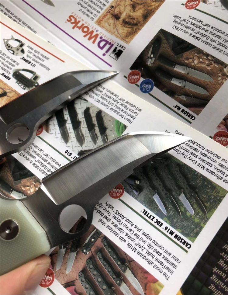 蜘蛛C168GP折刀 全长:190 mm 刃长:85 mm 闭合长度:105 mm 刃厚:3.5 mm 刃材:9Cr18Mov 柄材:G10 硬度:58HRC 重量:150 g
