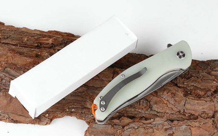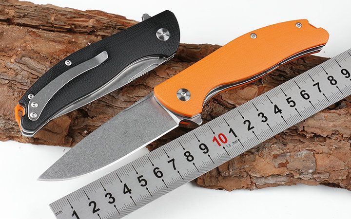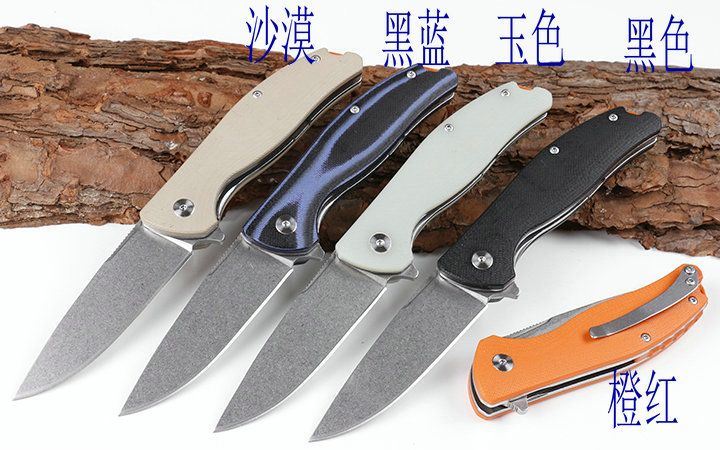 小熊头YD01轴承折刀 全长:19.2cm 刃长:8.3cm 柄长:10.9cm 刃宽:2.4cm(最宽处) 硬度:57HRC 厚度:0.32cm 柄材:全钢+黑色G10 重量:150克(含包装) 刃材:440 表面:沙漠色,黑蓝色,橙红色,玉色,和黑色五款式,下单请注明 其他:黑色礼品盒.