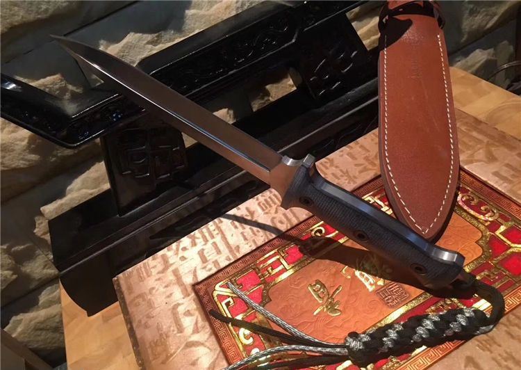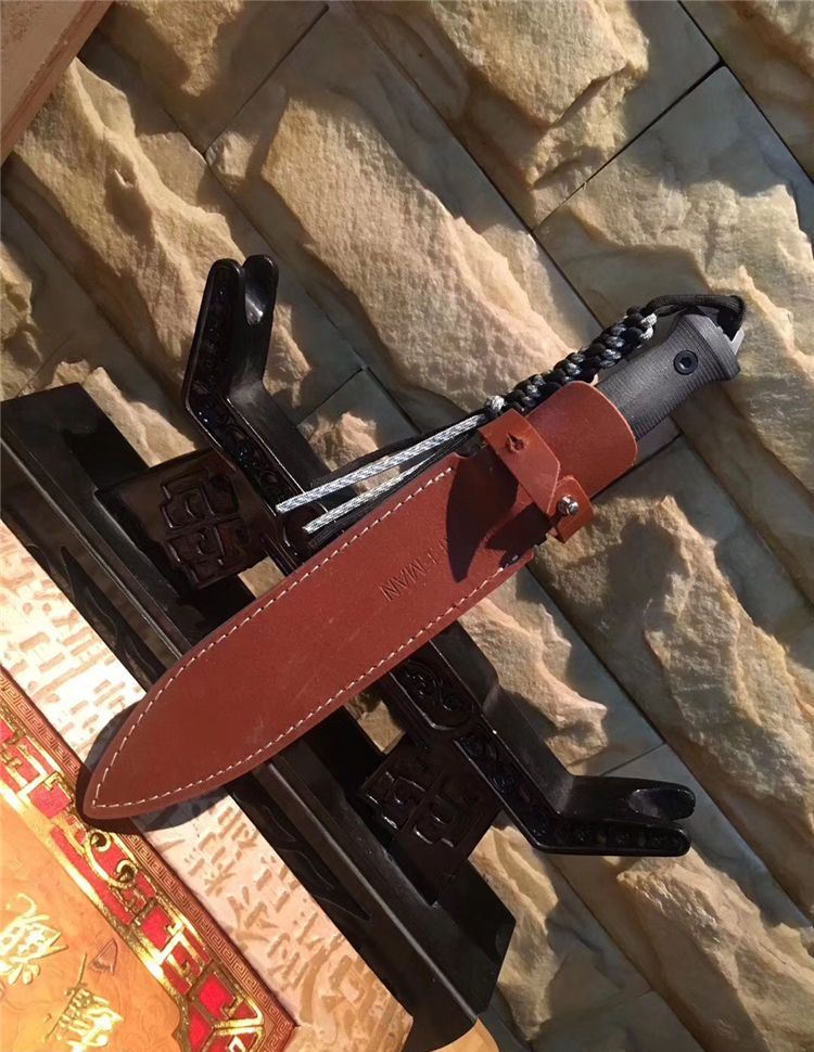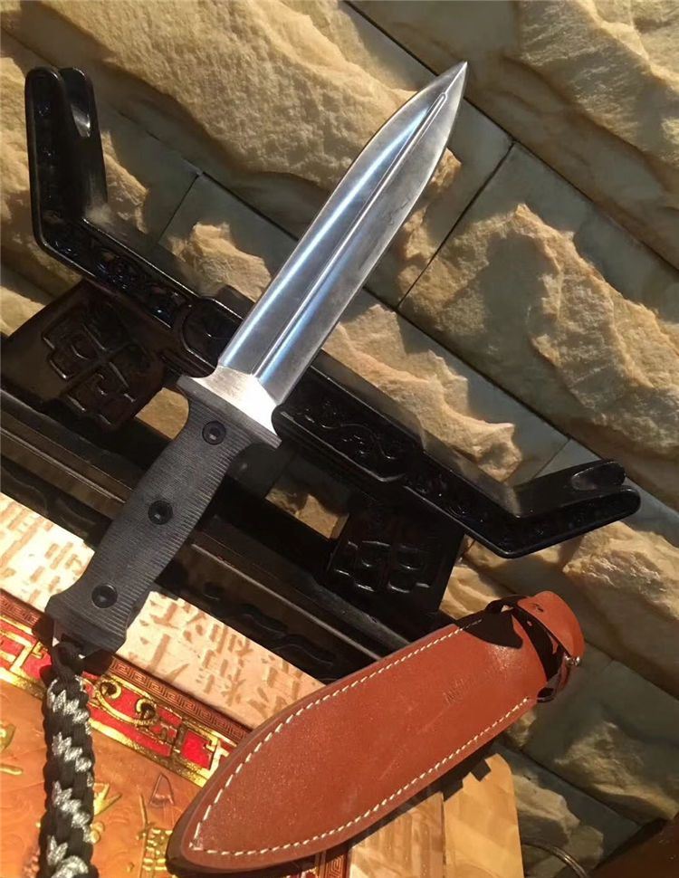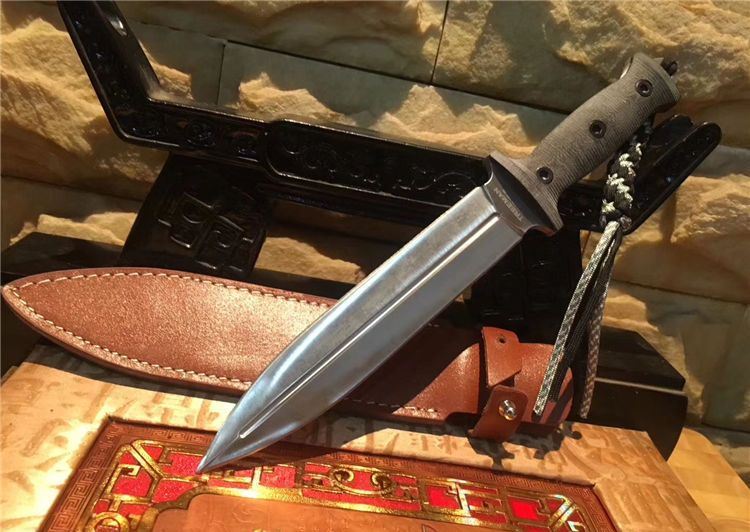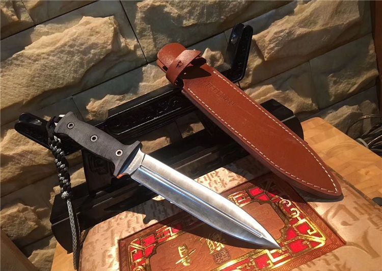 树人双锋剑刺g10柄 全 长:318mm 刃 长:19.8mm 柄 长:12.0mm 刃 宽:35mm 刃 厚:0.6mm 刃 材:5Cr13Mov 重 量:453g(含包装) 硬 度:57HRC 表 面:拉丝 柄 材:米克塔 锁 型:定锁 其 他:配牛皮套和纸盒