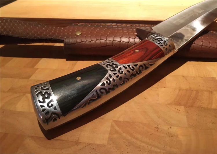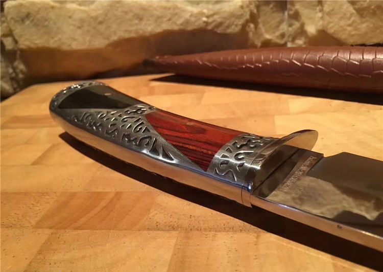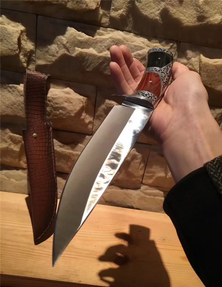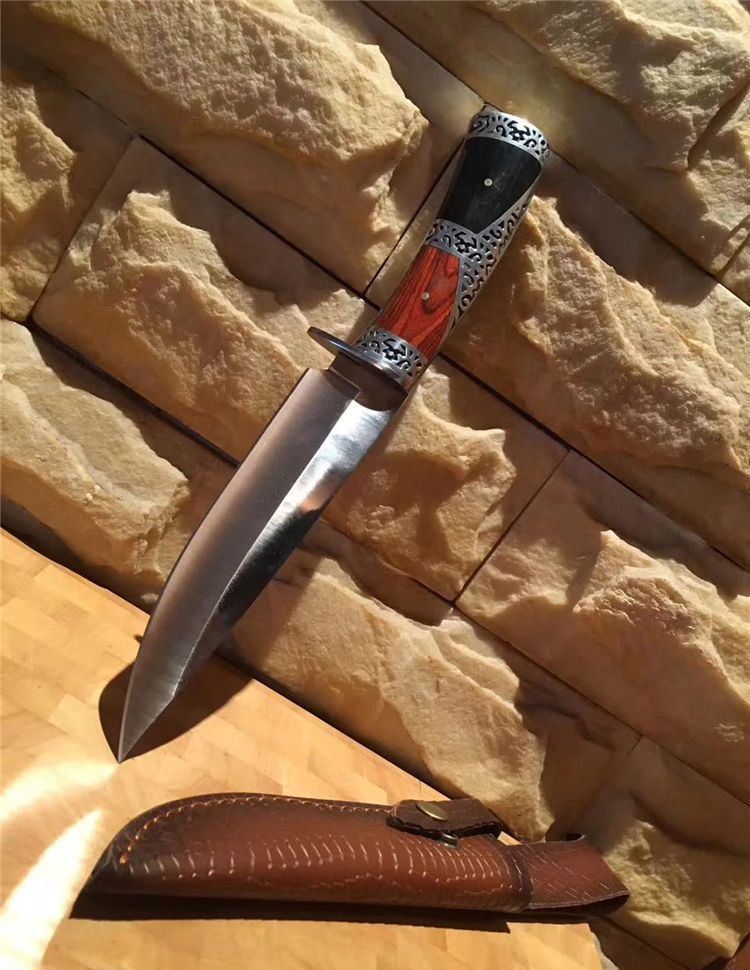 升级版哥伦比亚黑寡妇战术直刀 全 长:30.5cm 刃 长:18cm 刃 宽:4cm(最宽处) 刃 厚:4CM 柄 长:12.5cm 柄 厚:2.3CM 表 面:雕刻 刃 材:3CR13 硬 度:57HRC 柄 材:酸枝木 重 量:480克(含包装) 包 装:高端手工雕花皮套