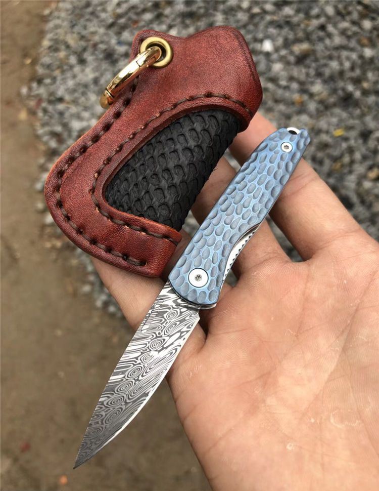 小花生瑞粉大马士革折刀 全长:130MM 刃长:55MM 刃宽:14MM 刃厚:2.5MM 净重:约49克(不含皮套) 刀刃硬度:60HRC 制作工艺:真空热处理,大师级工匠制作 刃材:火焰纹瑞典粉末大马士革钢 柄材:TC4钛合金 皮套:【意大利进口优质植鞣皮】纯手工缝线镶嵌鱼籽皮 小花生瑞粉大马士革折刀,刀刃为火焰纹瑞典进口粉末大马士革钢刀刃,手柄采用TC4钛合金,表面手工雕花,整体上档次,收藏送礼不二之选。整刀手感出色,各配件都是精密线切割开料,开合紧凑,装配工艺精湛!