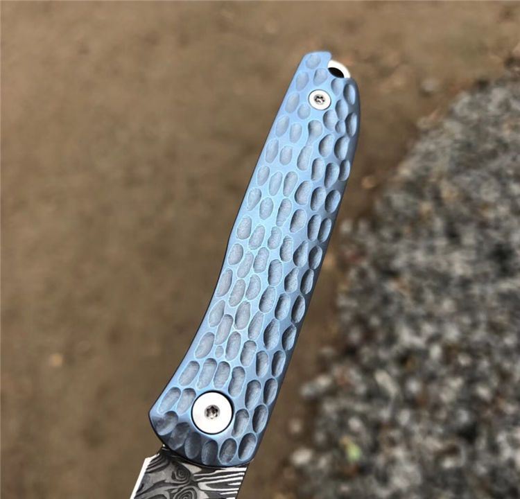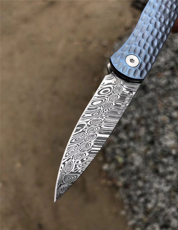 小花生瑞粉大马士革折刀,刀刃为火焰纹瑞典进口粉末大马士革钢刀刃,手柄采用TC4钛合金,表面手工雕花,整体上档次,收藏送礼不二之选。整刀手感出色,各配件都是精密线切割开料,开合紧凑,装配工艺精湛!
