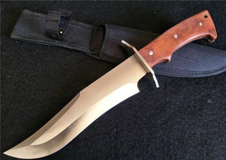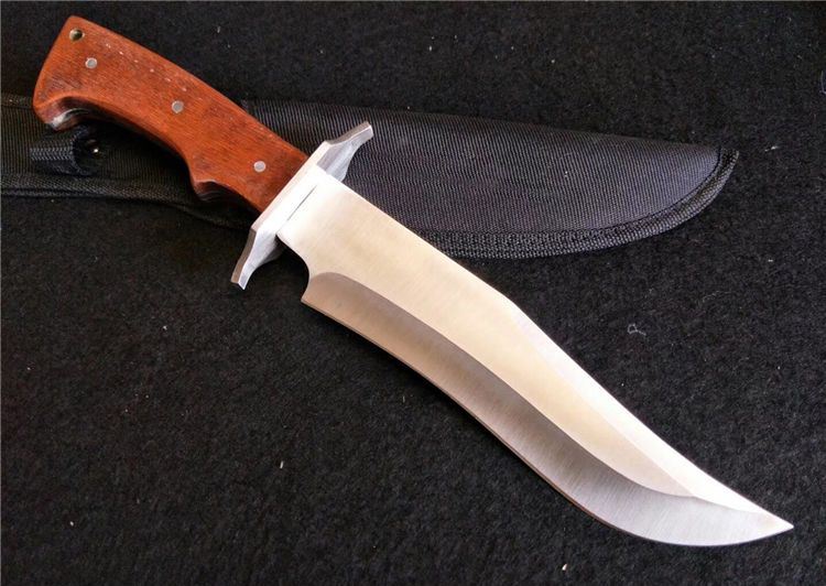 UC布维木柄直刀 全 长: 33.5cm 刃 长: 20cm 柄 长:13cm 刃 厚: 3mm 刃 材: 3CR13 硬 度: 52HRC 柄 材: 红木柄 表 面: 砂光