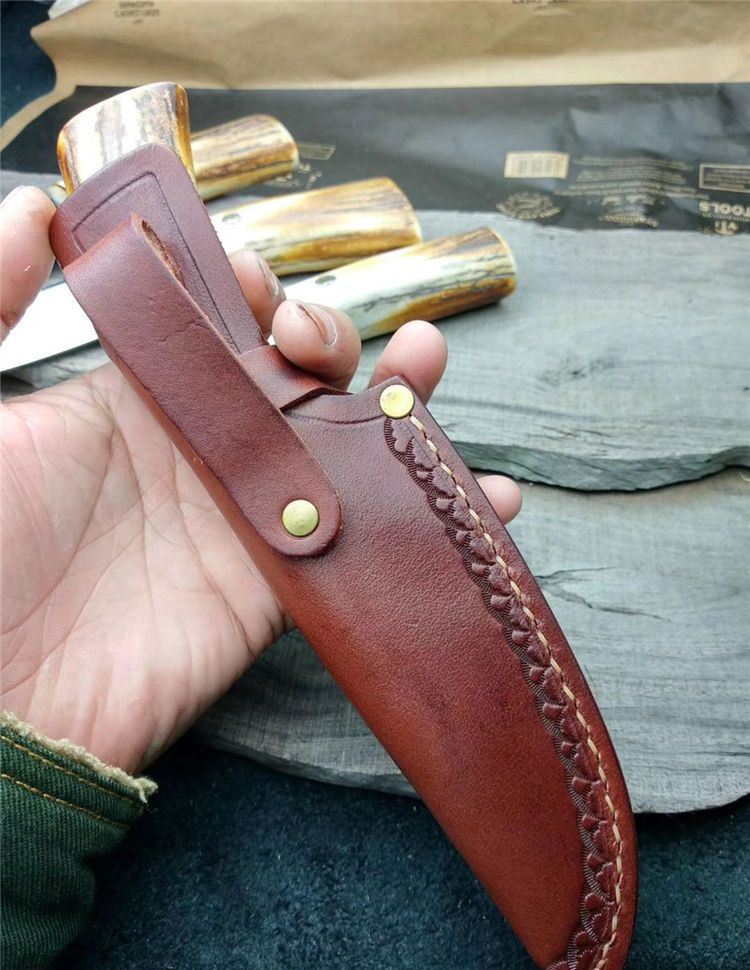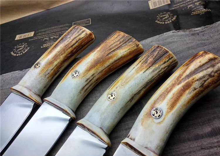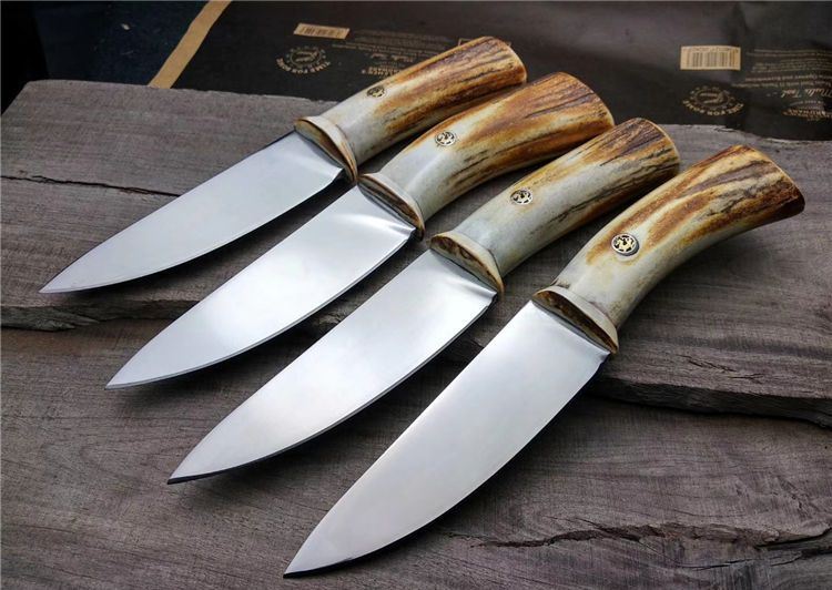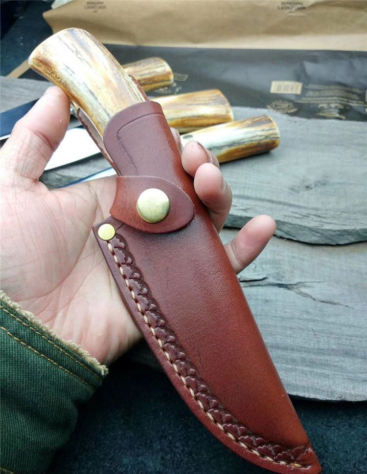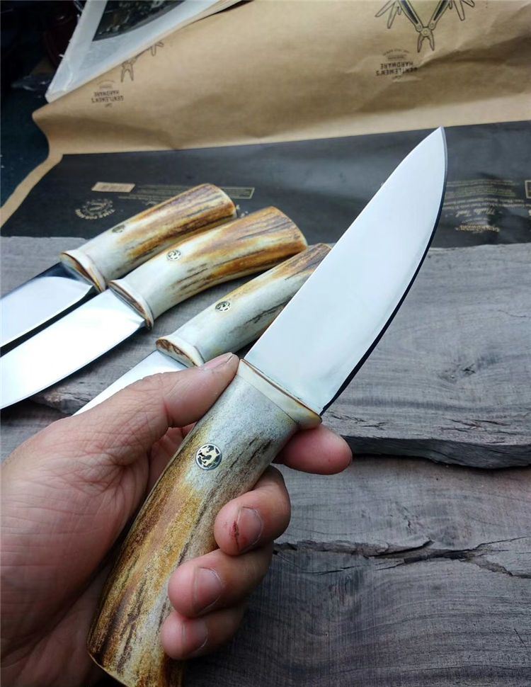 野人风系列--“逐鹿"出货,刃材采用瑞典进口的RLW34钢,果然名不虚传,不愧是世界上最好的钢材之一。柄为天然鹿角。配头层牛皮刀鞘。纯手工制作,刀刃精细打磨镜面抛光,刀柄粗犷防滑舒适,锋利、耐用。