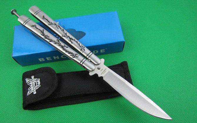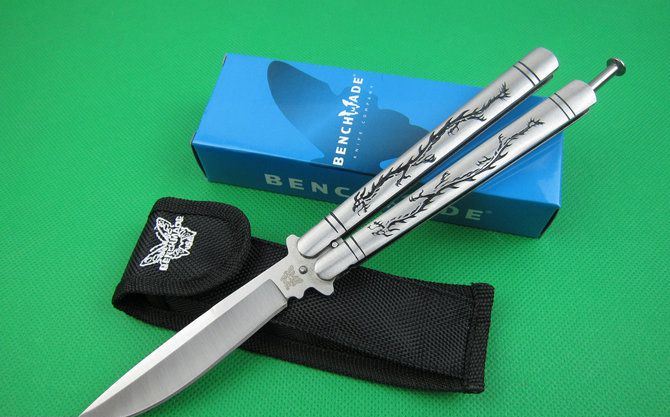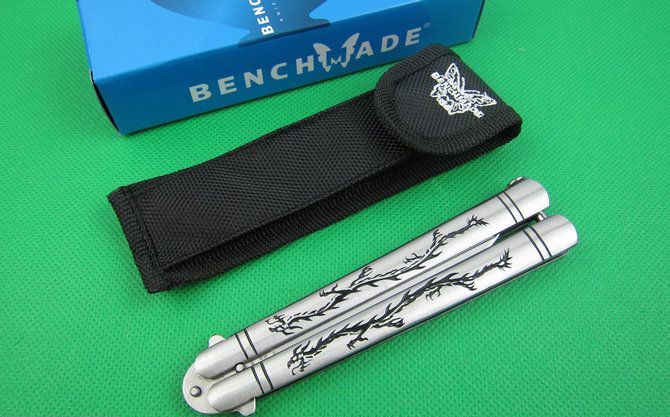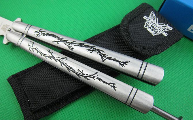 蝴蝶.C42S龙纹柄甩刀 全 长:24.0cm 刃 长:9.2cm 柄 长:13.5cm 刃 宽:1.9cm(最宽处) 刃 厚:2.8mm 刃 材:440C 硬 度:56HRC 刀 柄:钢柄,雕刻龙纹。 表 面:砂光 重 量:210.0克 配尼龙袋,原厂包装