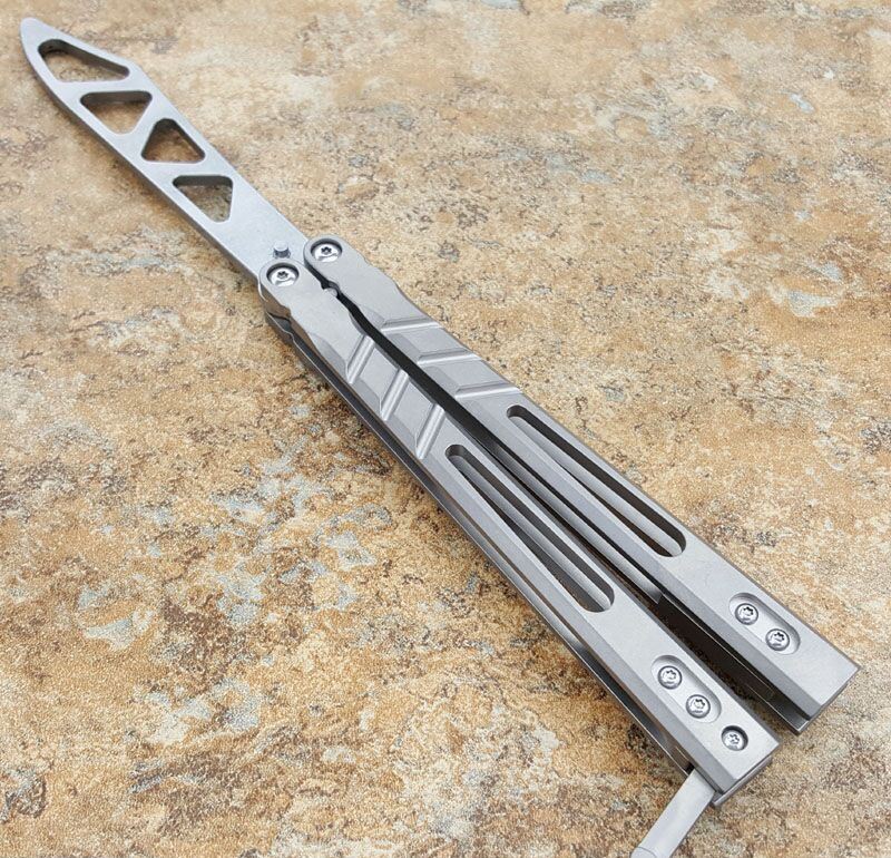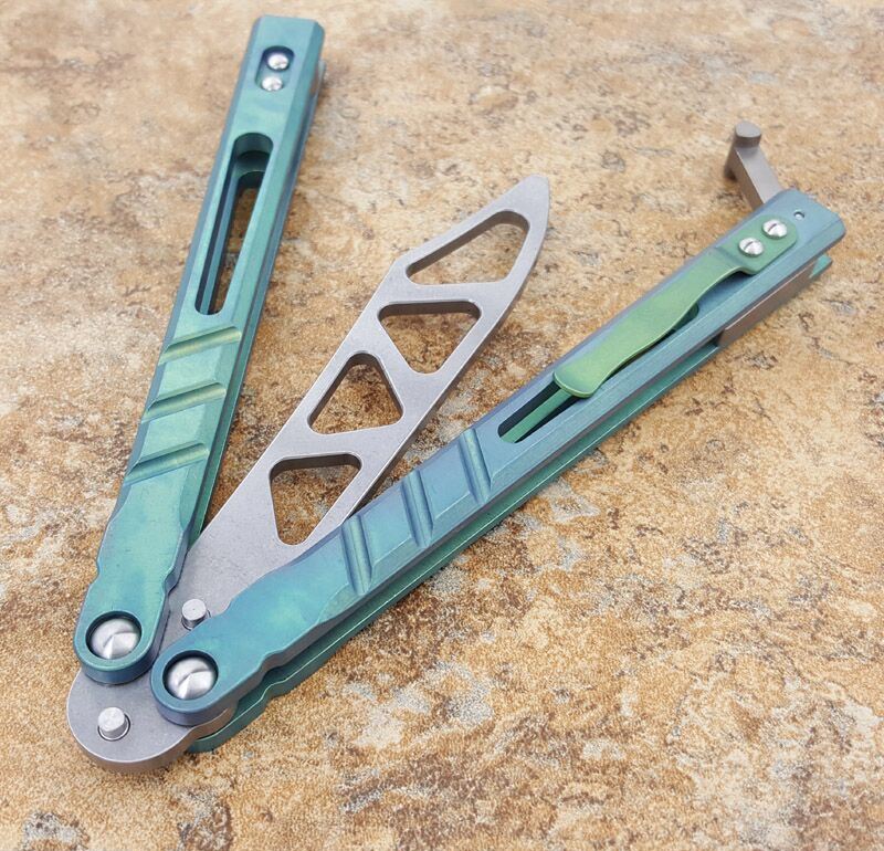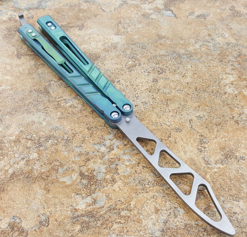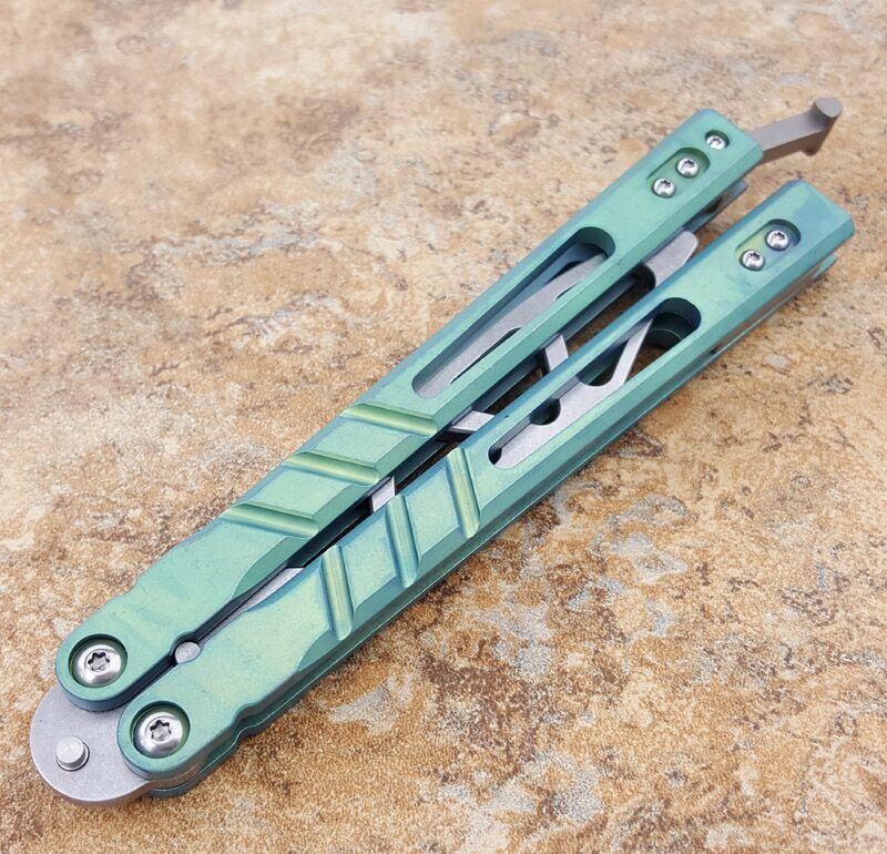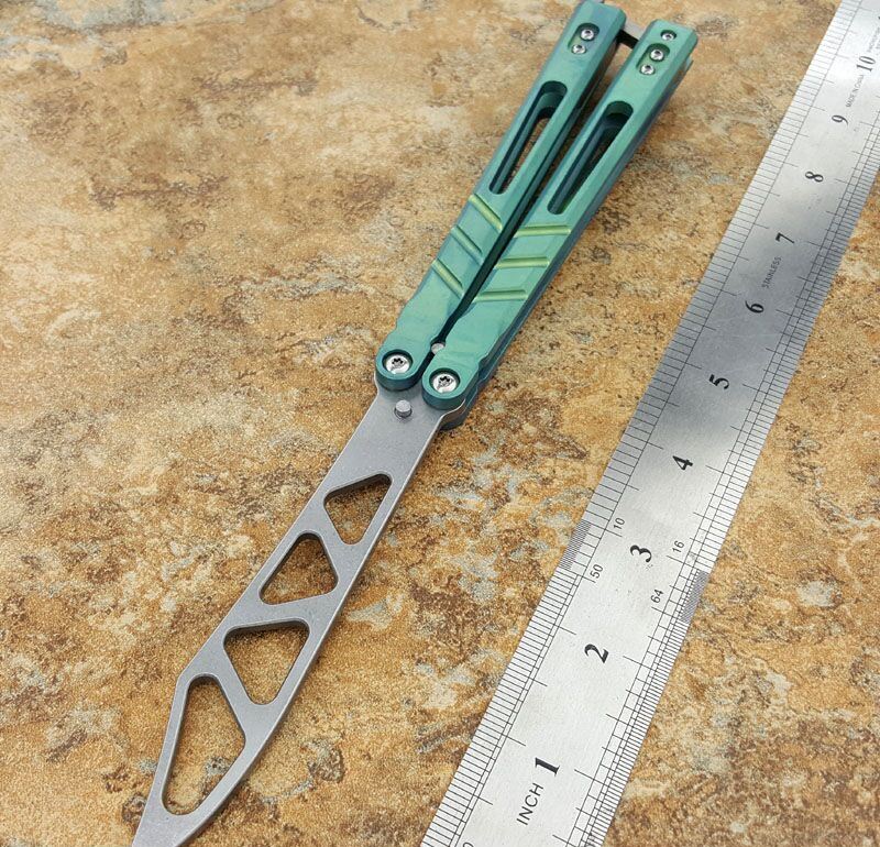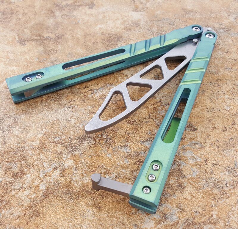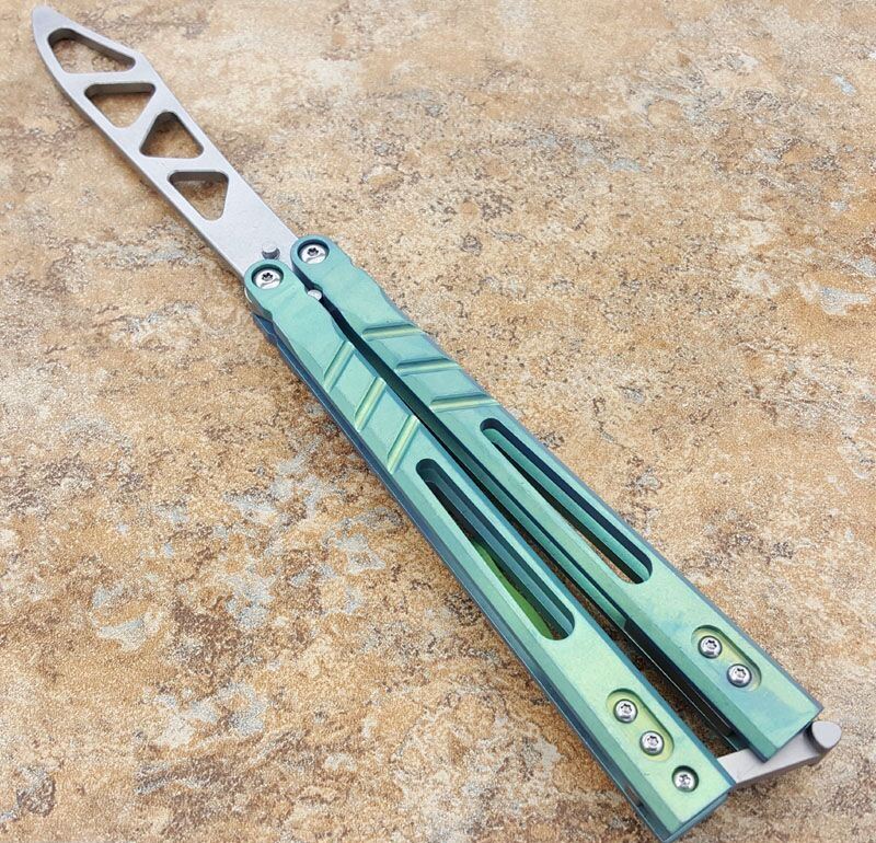 the one钛柄AB蝴蝶甩刀(钢本色柄\绿柄练习刃)