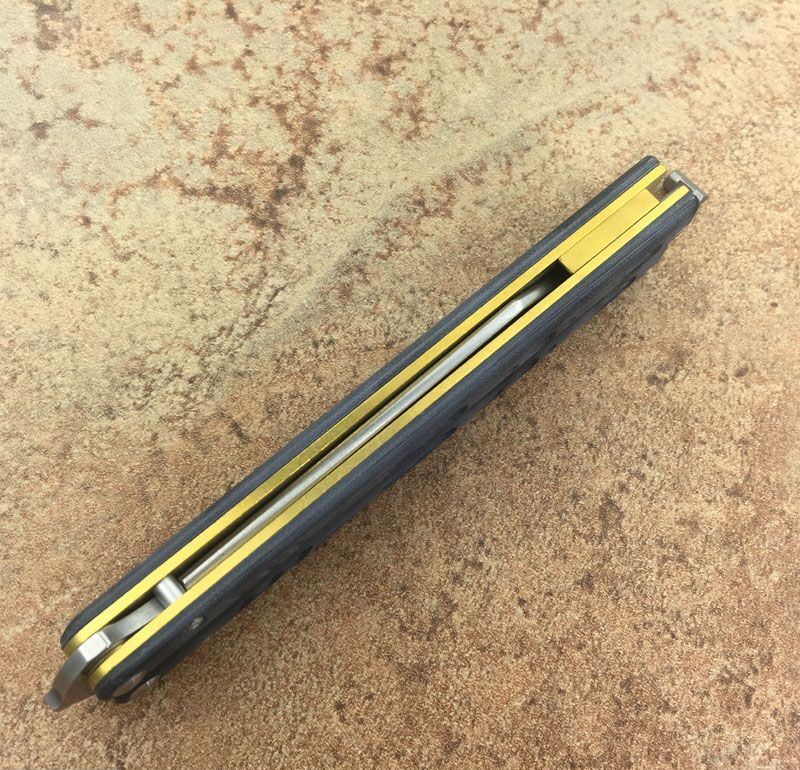 BRS系列,bushing轴套系统,搭配钛内衬,G10轻质高强手柄,重量只有150克。转动非常顺畅,D2刃材,数控精磨