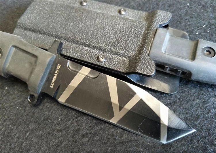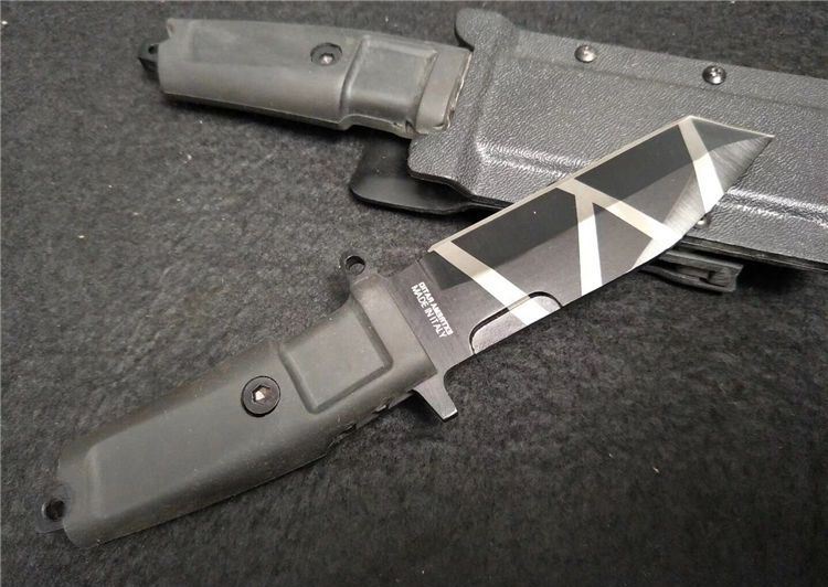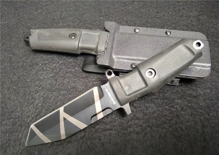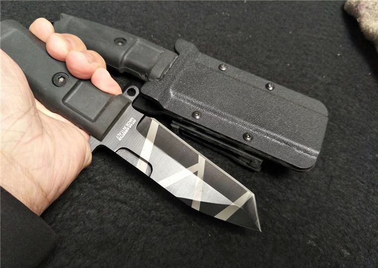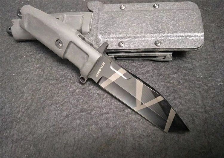 极端武力平头小直刀虎纹 全 长: 22cm 刃 长: 11.3cm 柄 长:10.6cm 刃 厚: 5.5mm 刃 材: 5CR13 硬 度: 57HRC 柄 材: 塑料 表 面: 黑钛