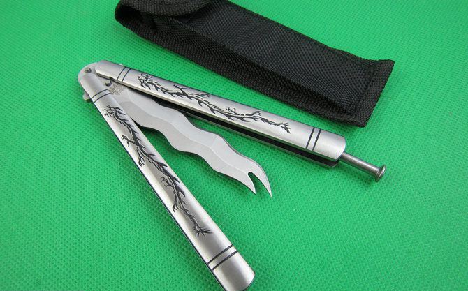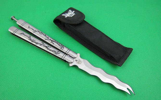 蝴蝶.C57S龙纹柄甩刀 全 长:24.0cm 刃 长:9.2cm 柄 长:13.5cm 刃 宽:1.9cm(最宽处) 刃 厚:2.8mm 刃 材:440C 硬 度:56HRC 刀 柄:钢柄 表 面:砂光 重 量:190.0克(含包装) 配尼龙袋,原厂包装