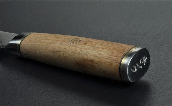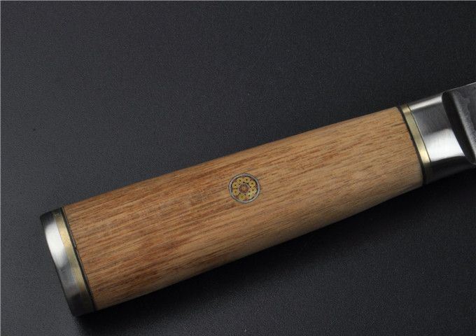 手柄材料:进口木蜡木+不锈钢头+手工刀纯铜马赛克铆钉