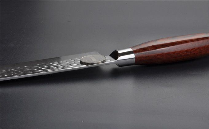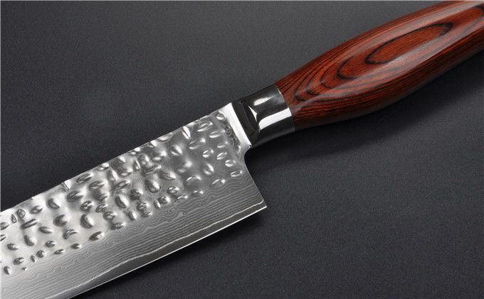 本刀采用进口VG-10大马士革钢锻造制作,具有硬度高,防锈性能好,韧性好的特点。以达到优异的锋利度和切削效果。刀柄采用天然彩,手感更加舒适美观!配送礼品盒,居家送礼之精品!具有很高的使用和收藏价值!