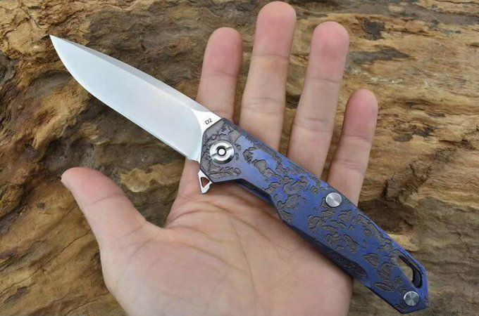 TS21变种天冀全钛柄球轴承翻转折刀D2钢