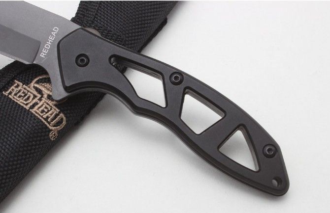 出口REDHEAD小直刀 全长:2107mm 刃长:98mm 柄长:114mm 刃材:5Cr13 硬度:58HRC 刃厚:0.3mm 刃宽:26mm 涂层:灰钛 柄材:一体钢+钢 刀鞘:尼龙套+吸卡包装重量227g(含包装)