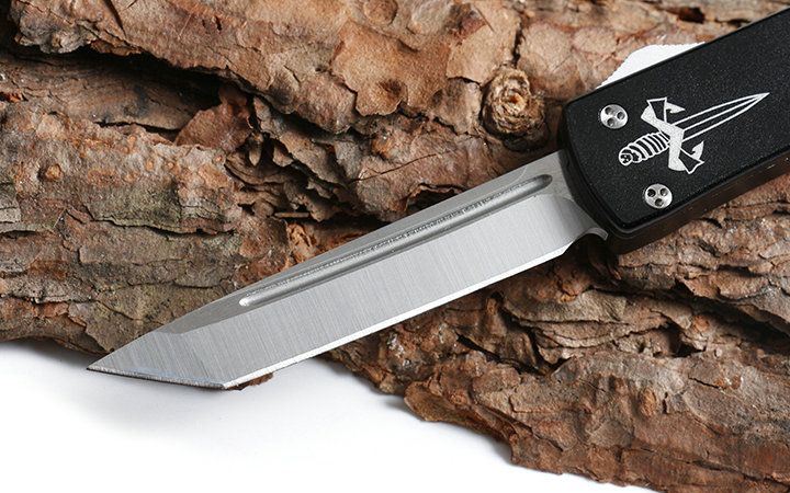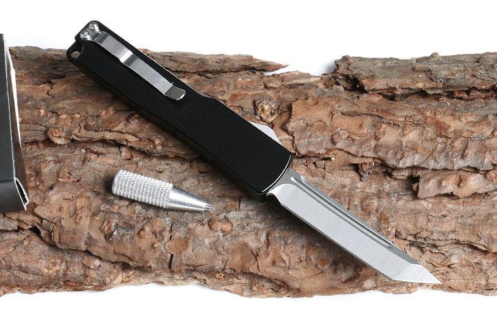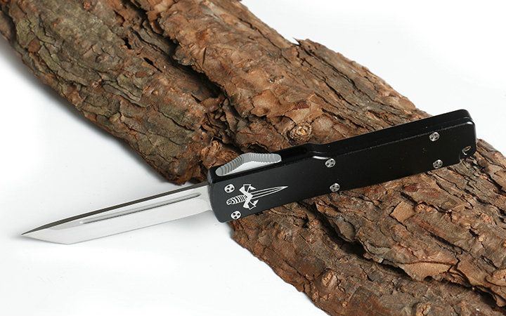 微技术UT大号直出跳刀方柄 全长:21.5 CM 刃长:8.5CM 柄长:12.5CM 刃宽:1.6CM 刃厚:0.31 CM 刀刃材质:7CR17 柄材:铝合金镀黑钛 刀型:直跳 锁定类型:按钮锁 重量:200克(含包装) 附件:尼龙套,说明书,彩盒,送拆刀工具 整刀用CNC,电脑锣,线切割制作而成,手工,精密度非常高