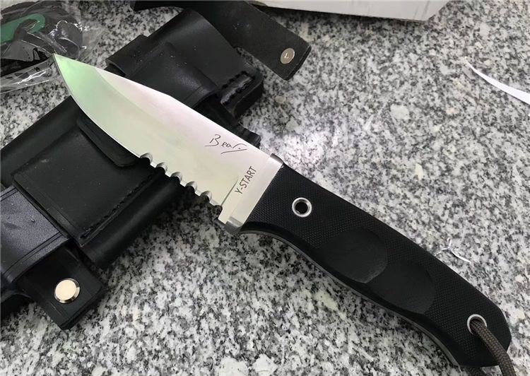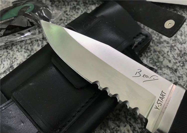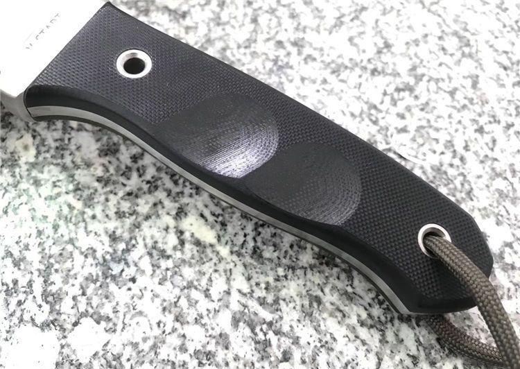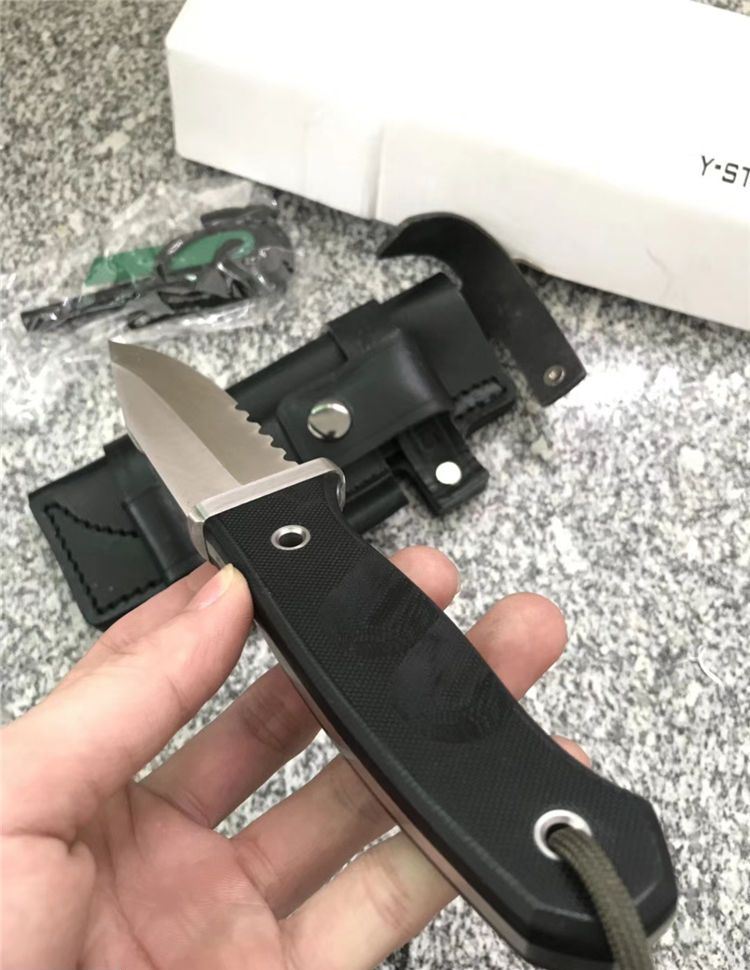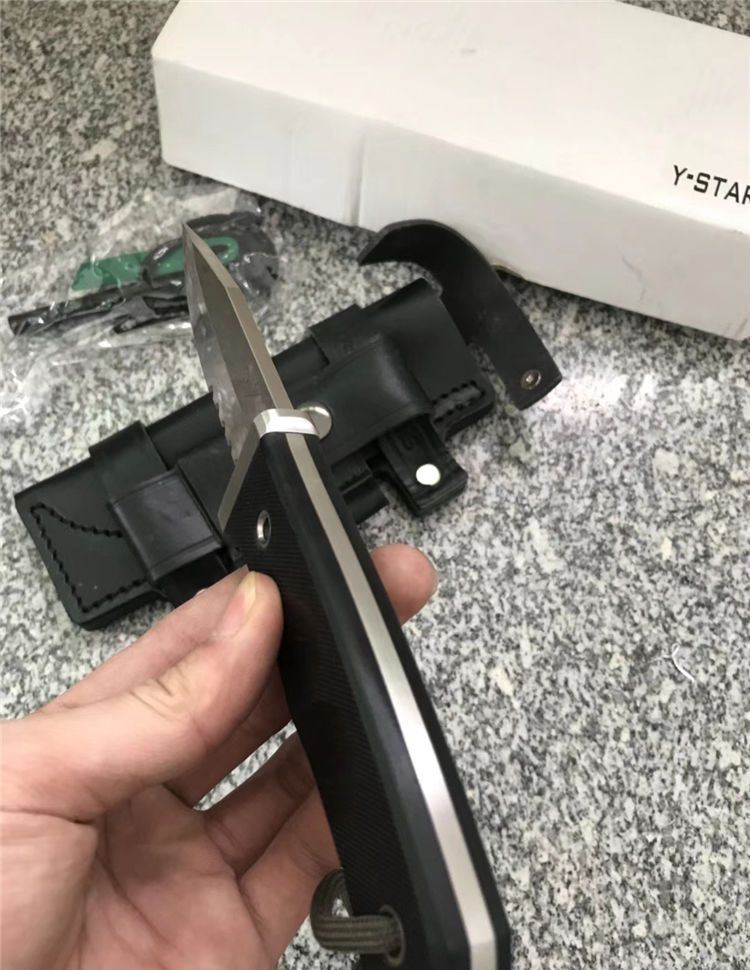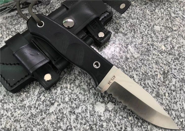 随风经典版贝尔野外求生直刀半齿 刃长: 98mm 全长:215mm 刃厚:4mm 刃材:ATS-34 硬度:HRC62±0.5 柄材:G10 刀套:真皮套 在原来刀套的基础上增加了附件袋(不含附件)质地,牛皮(配单独加工子母螺丝,做过热处理,可保证拆卸无损)拆卸自有其好处,简单举例好比战术包上,那些插条是2头密合的,如果想把刀固定上去,只能拆卸螺丝后固定,这样方便也牢靠 改进: 1. 护手改成了一体结构,从手柄后面穿进去了,结构牢固。 2. 手柄外形和防滑槽改进了,使刀柄握持更舒适,饱满!
