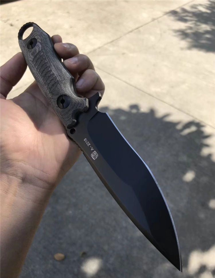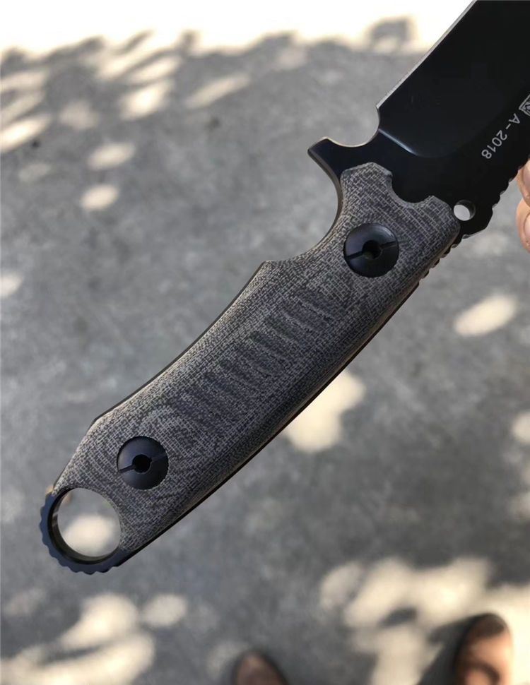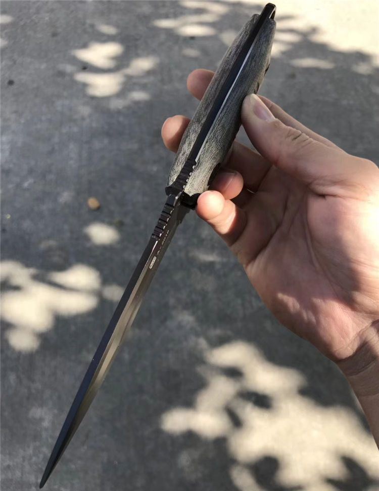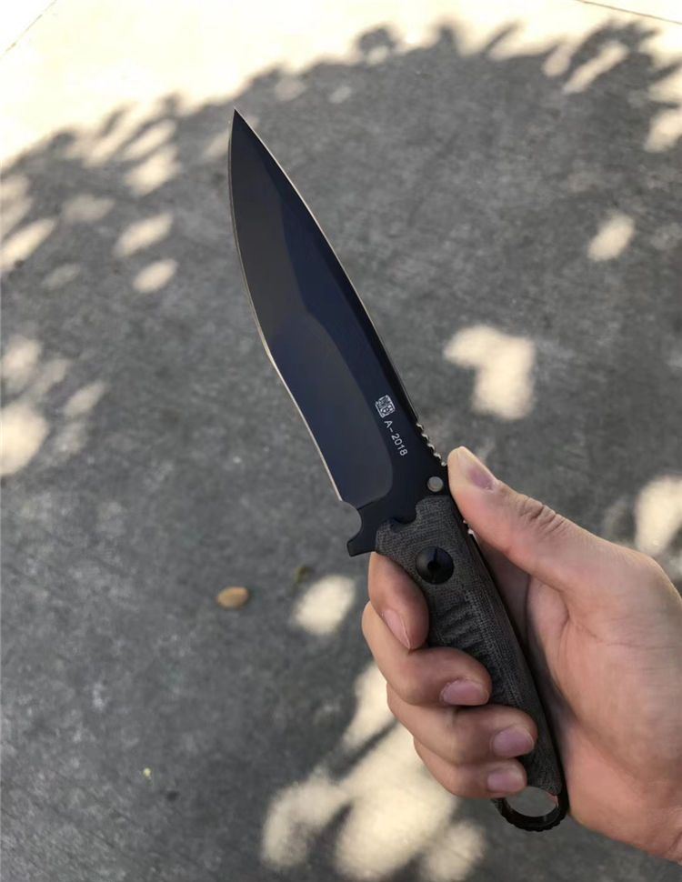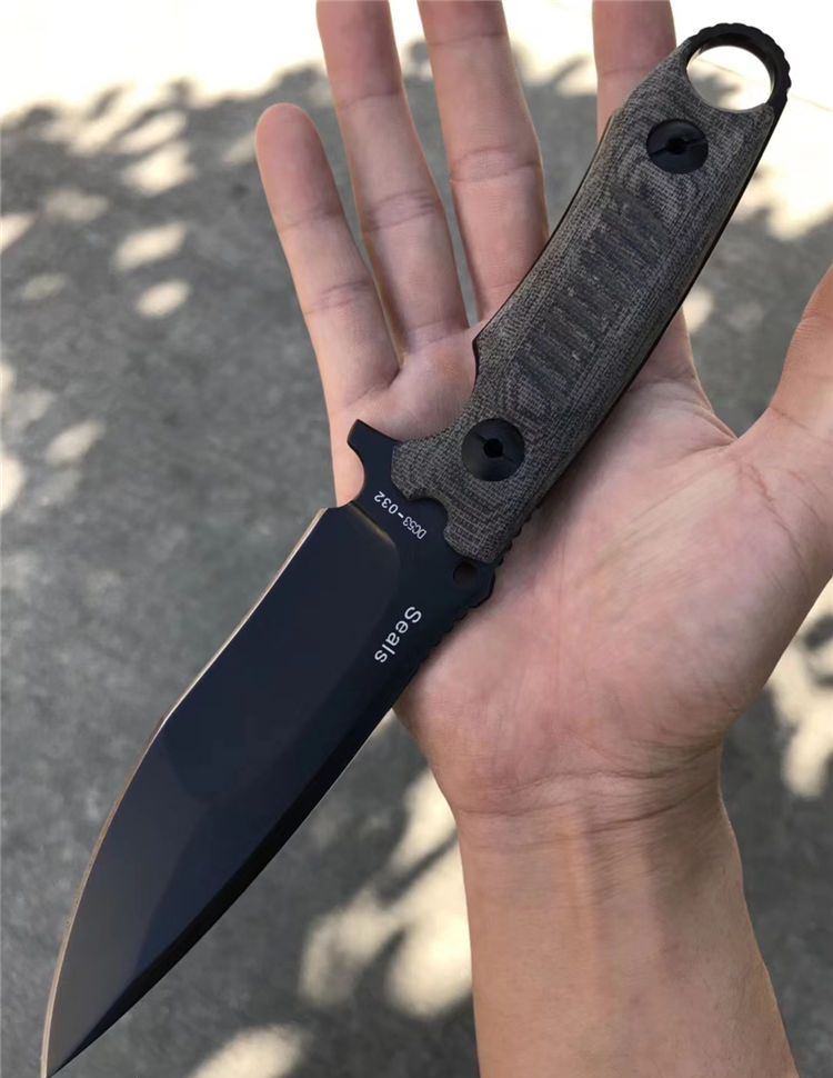 2018新款百炼海豹突击队战术直刀 总长:26cm 刃长:12.5cm 刃厚:5mm 刃宽:3.5cm 钢材:进口DC53钢 硬度:61-63HRC真空深冷热处理 柄材:进口亚麻,手感防滑效果很好 刀套:进口战术K鞘! 真材实料进口DC53钢,硬度达到62-63HRC,强度非常好!亲自暴力测试砍铁管铁桶刃口都不伤刃,可准确告诉大家这款进口DC53钢强度是非常好,和国产的DC53钢完全不是一个等级!