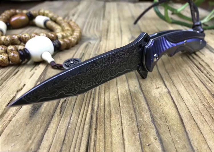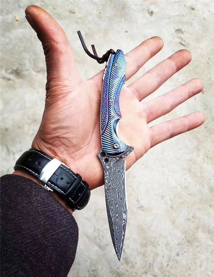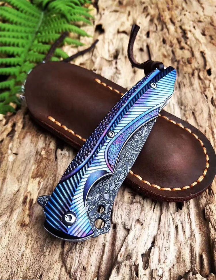 简师傅锤头鲨大马士革折刀 全长:19cm 刃长:8.6cm 刃厚:3.5mm 硬度:60HRC 配置头层牛皮手工缝制皮套,赠送简师傅亲笔证书