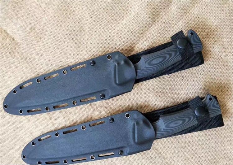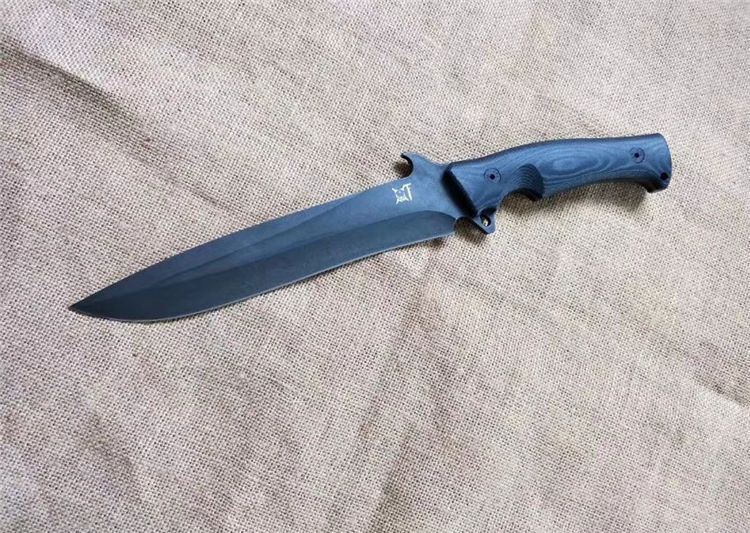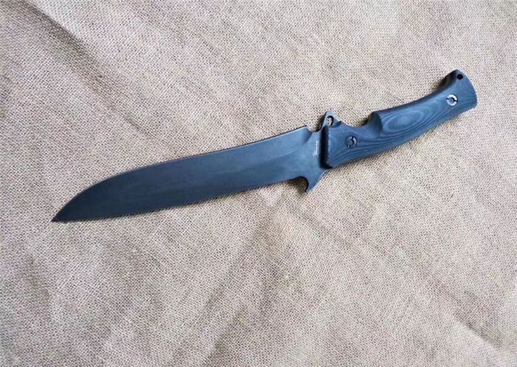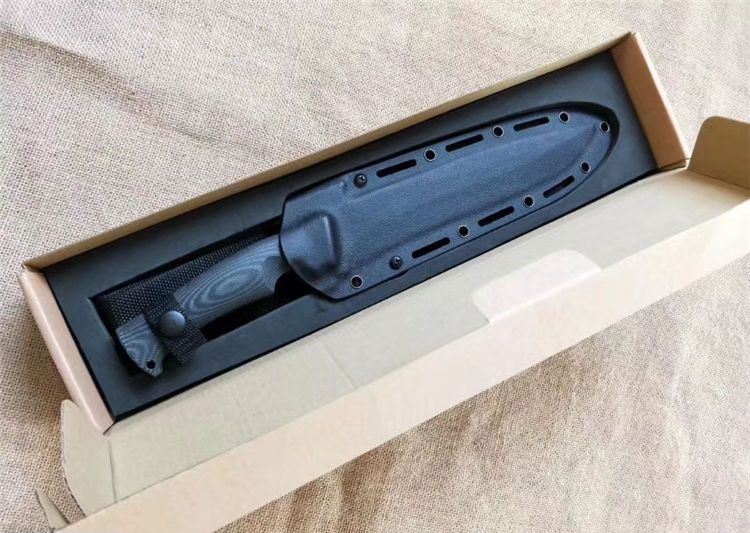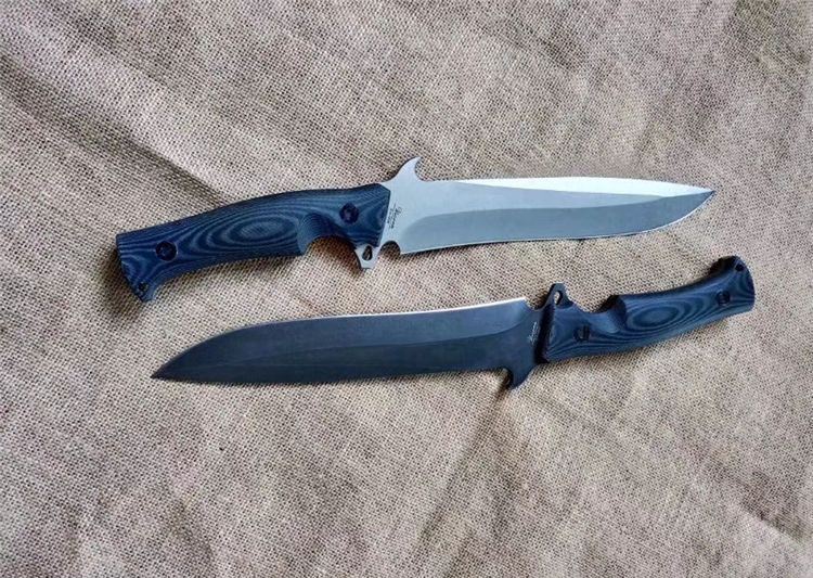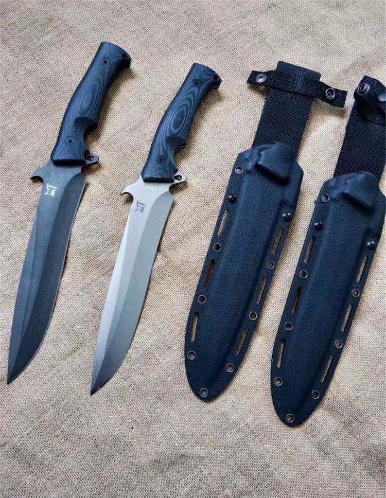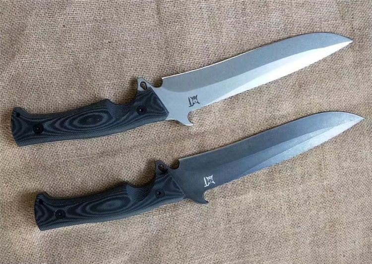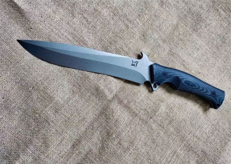 华匠坊独角兽战术直刀 刃材:D4 全长:360MM 刃长:218MM 柄长:142MM 刃宽: 36MM(最宽处:60MM) 刃厚:4.8MM 柄材:黑白美卡塔 硬度:60-62(真空油率) 净重:400g