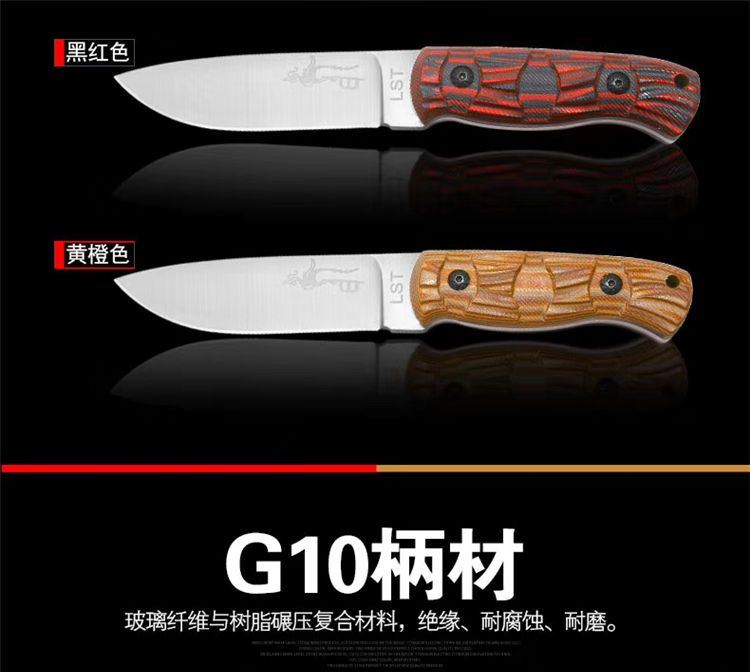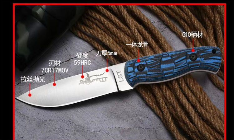 LST冷冰战术直刀 八色任选 全长:21cm 刃长:9.5cm 刃厚:5mm 刃材:7CR17MOV 硬度:59HRC 重量:162g 净重(含包装388g) 表面:砂光 柄材:G10 刀鞘:牛皮套 其它:超锋利 品质:高品质 包装:礼品盒