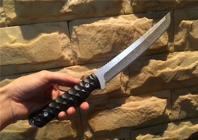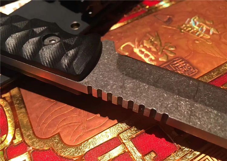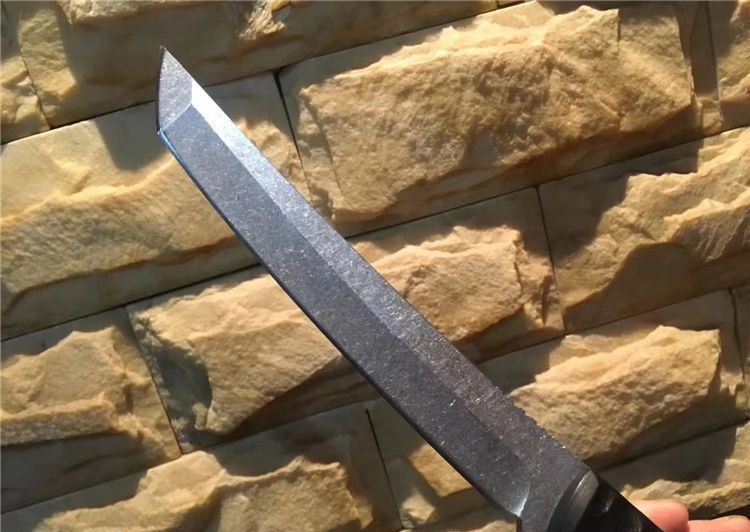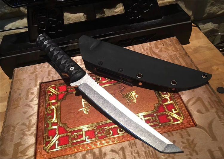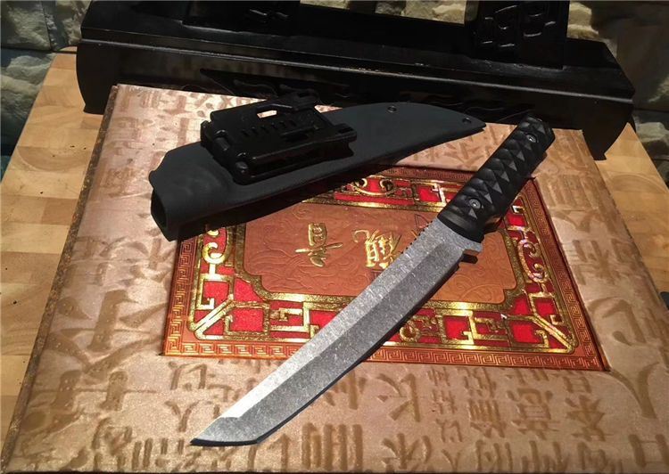 大千古武士刀 全长:315mm 刃长:175mm 刃厚:5.0mm 刃宽:30mm 柄长:130mm 手柄:cncG10 材料:440C 硬度:58HRC 表面石洗 配K鞘 手柄选用9mm单片g10 钢板加厚