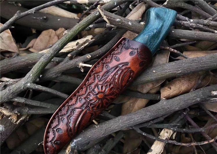 皮套包装:复古风格雕花牛皮刀套+高级包装盒